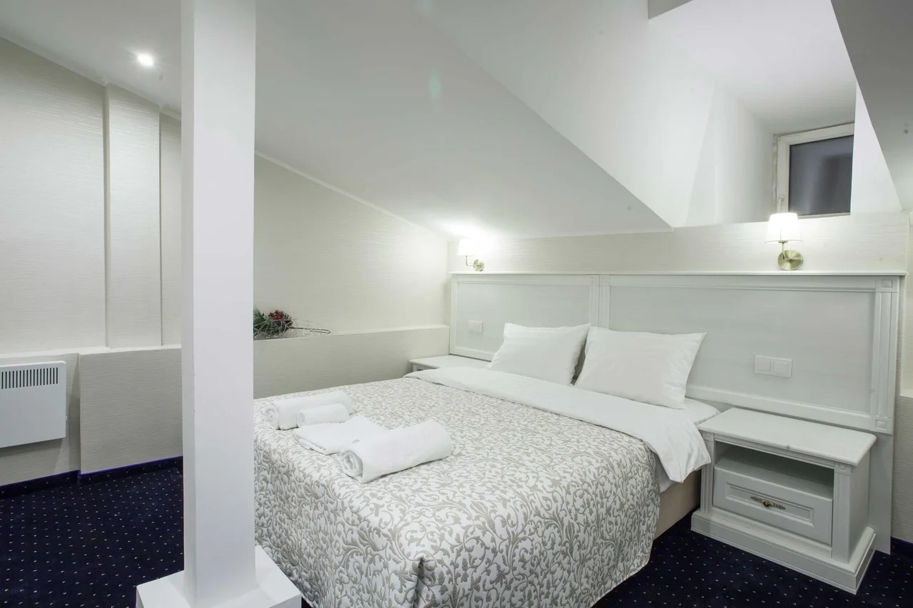 Останавливались в отеле 7-9.09.23, трое взрослых. Брали номер на мансарде на двоих (комфорт), нам поставили доп. кровать, что я указала при бронировании и заранее еще раз мы обговорили с администраторами. Сам отель расположен на 6 этаже дома, лифт есть - подниматься лучше на нем, потму что лестница очень крутая. Фото подъезда дома тоже прикладываю. Что было явным плюсом - хороший прием и отзывчивость администратора, было очень приятно общаться и решать вопросы.