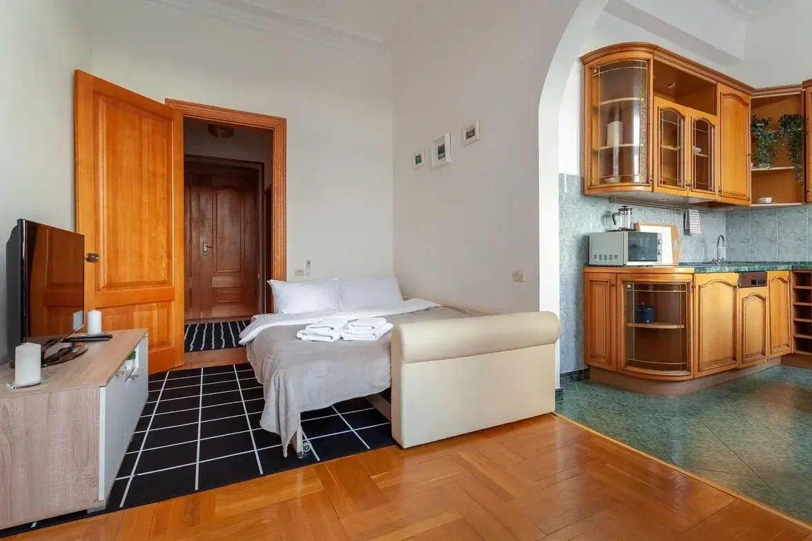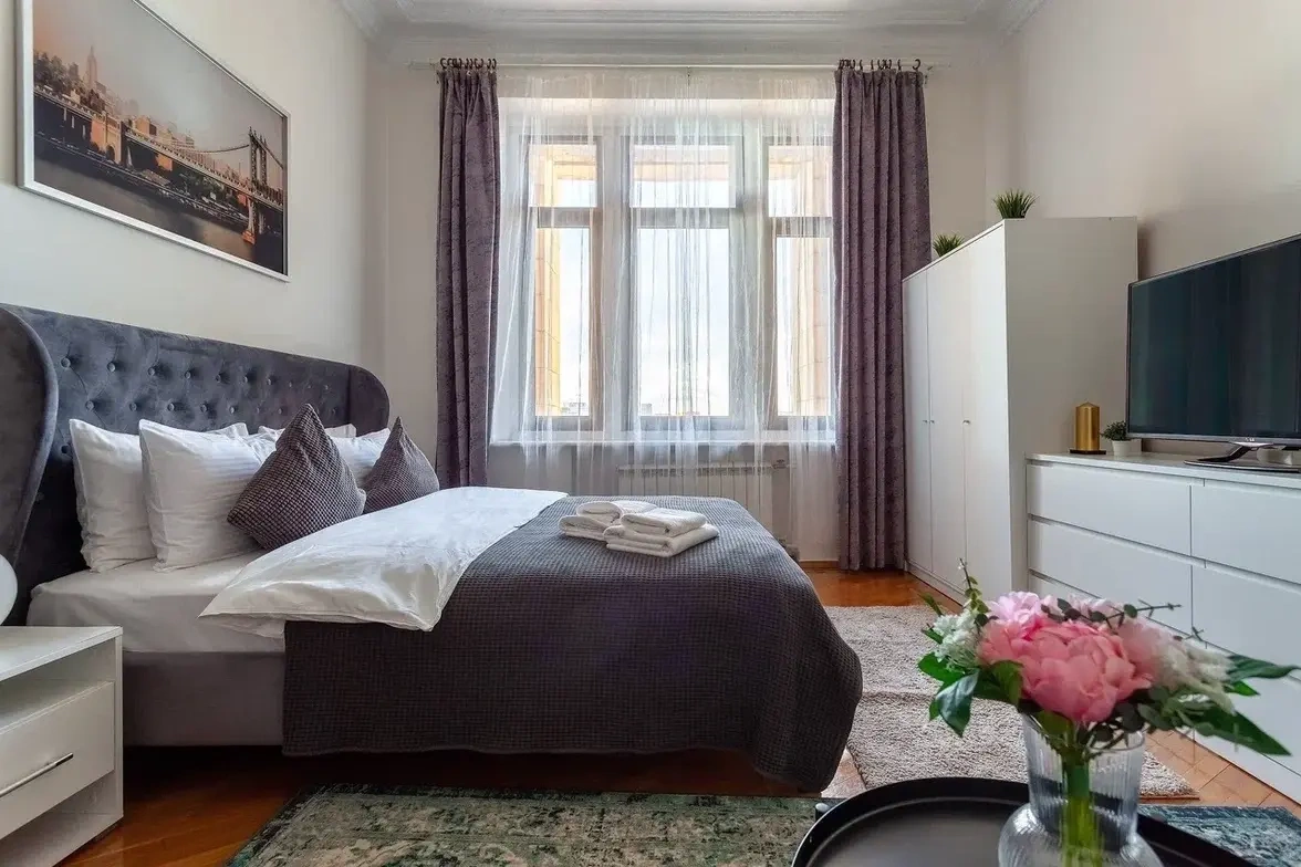 В этих апартаментах в распоряжении гостей две комнаты (спальня и