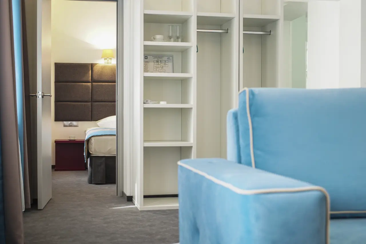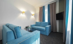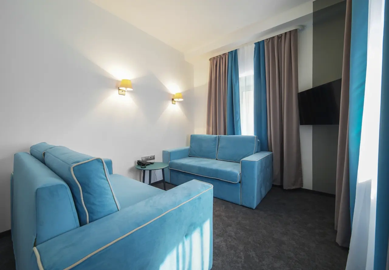 Номера категории "Люкс" – это просторный номер, объединивший в едином пространстве многофункциональную зону отдыха, рабочий уголок и спальное место. В номере "Люкс" вы найдете все необходимое для приятного отдыха. Площадь номера составляет 36 м². В спальне расположена кровать King с мягким матрасом и свежим постельным бельем, , в гостиной - два небольших дивана, где вы сможете отдохнуть после насыщенного дня. В номере имеется рабочее место с письменным столом и стулом, где вы можете выполнять свои деловые задачи или просто организовать свою работу. Во всех комнатах есть телевизор с плоским экраном, чтобы вы могли насладиться своими любимыми программами или фильмами и высокоскоростной беспроводной интернет. Также есть мини холодильник, чайная станция, кофемашина, индивидуальный сейф для ценных вещей и документов. В собственной ванной комнате с джакузи вы найдете все необходимые туалетно-косметические принадлежности, включая полотенца, халаты, шампунь, гель для душа, мыло и фен. Номера категории "Люкс" специально разработаны для комфортного проживания семей, а также для индивидуальных путешественников или деловых поездок.