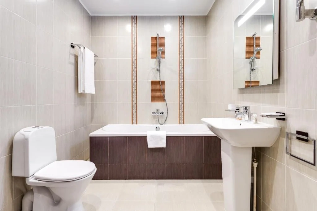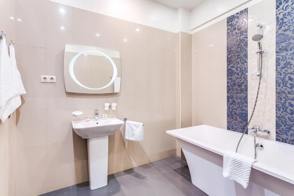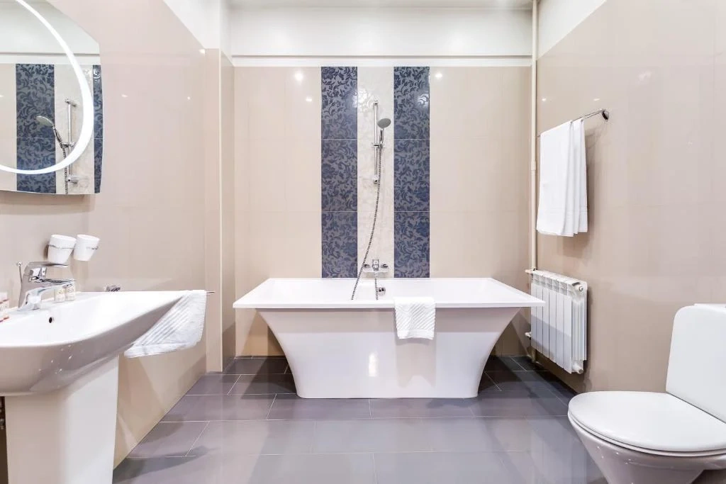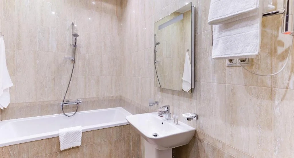 Большая комната и ванна была большой и чистой. Сразу захотелось с дороги принять ванну. В целом очень положительные впечатления, хороший и вежливый персонал. Соотношение цена/качество отличное