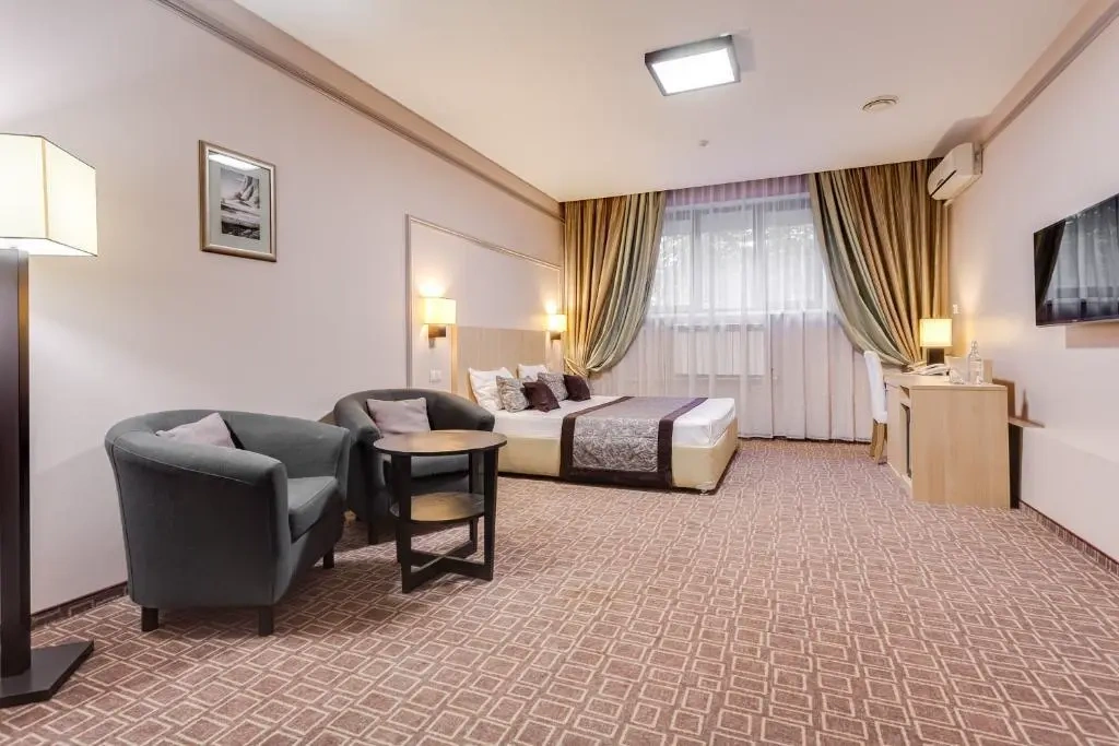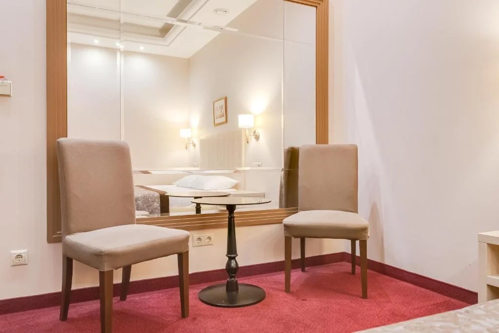 Мы со всей ответственностью подошли к вопросу создания для Вас максимального комфорта. Все номера спроектированы дизайнером, чтобы создать для Вас уютную, и при этом эргономичную, обстановку. Наши номера просторны, и Вы не почувствуете себя стеснённо, а дополнительные услуги, такие как: косметология, массаж, SPA-процедуры, бассейн и хамам, позволят максимально расслабиться и сделать Ваше пребывание в отеле Leon незабываемым!