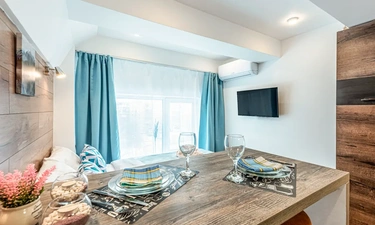 С домашними животными не принимаем, принимаем с детьми, запрещено проведение мероприятий (банкетов, свадеб), горячая вода постоянно, оплата наличными и пластиковой картой, отмена в любой момент для повторного бронирования