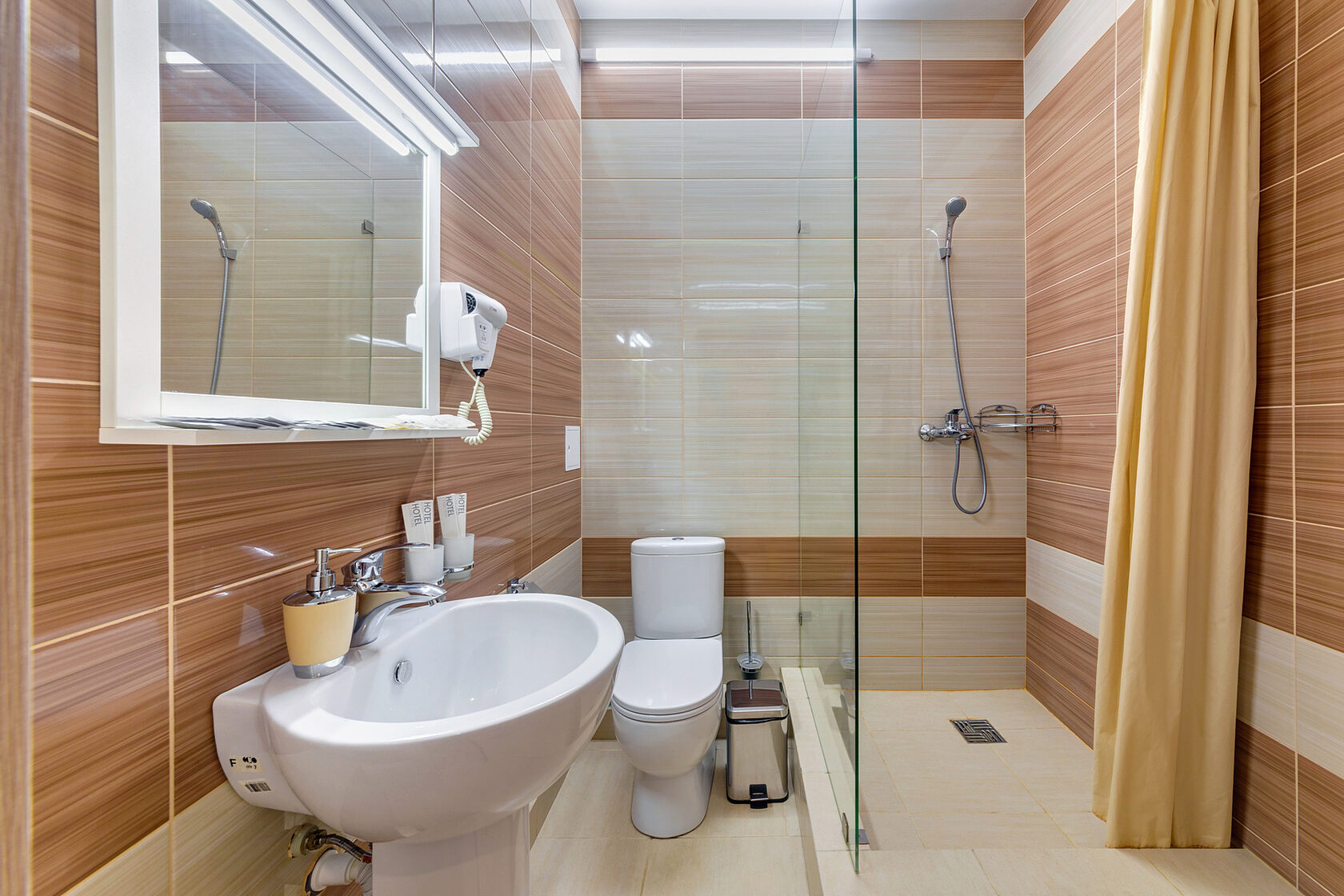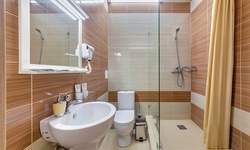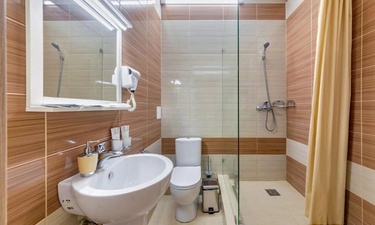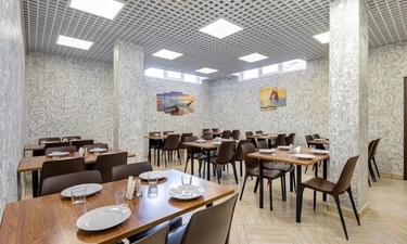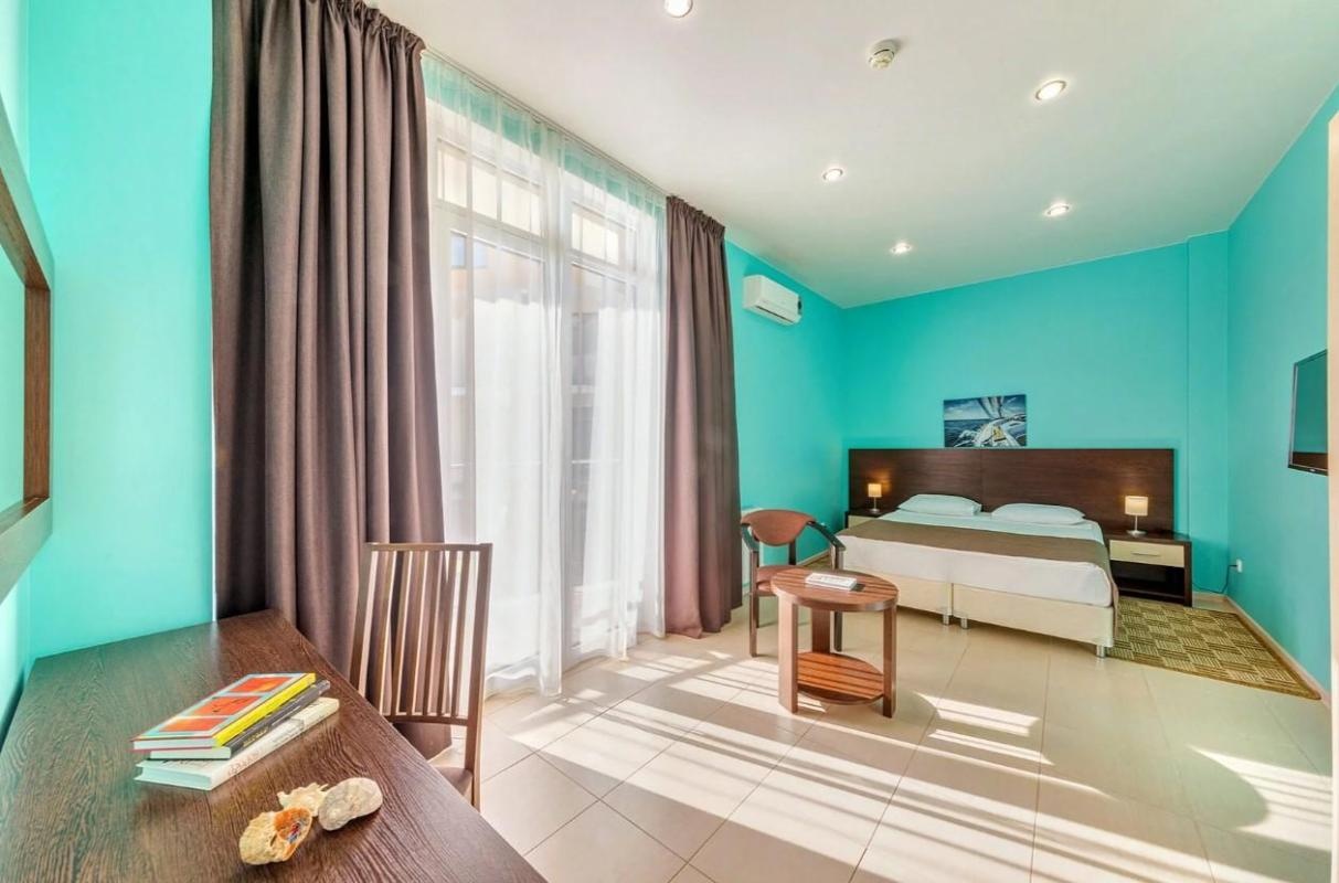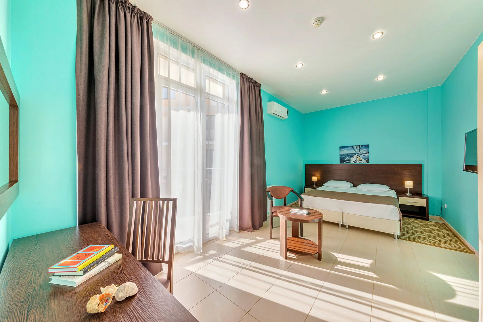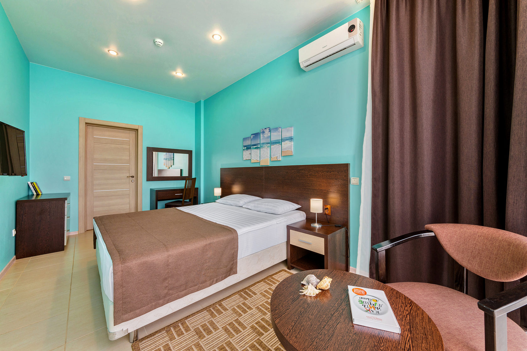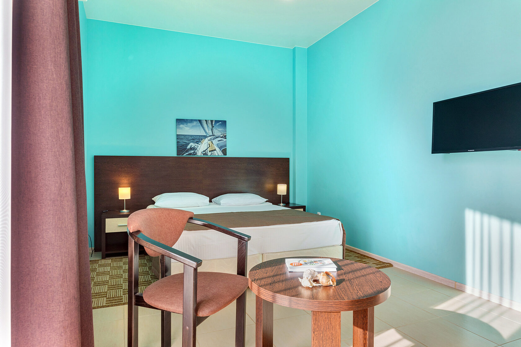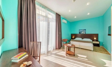 Отель расположен в тихом спокойном месте, напротив отеля есть парк, до моря пешком 10 минут. Рядом есть все необходимое: магазины, аптека, в здании отеля есть столовая.