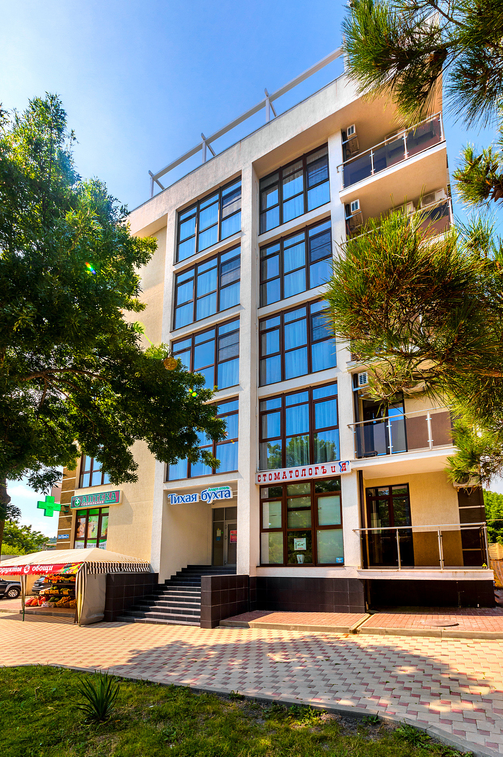 Круглогодичный семейный апарт-отель «ТИХАЯ БУХТА» в непосредственной близости от моря. До пляжа – 300 метров через небольшую рощу. Год постройки – 2018.