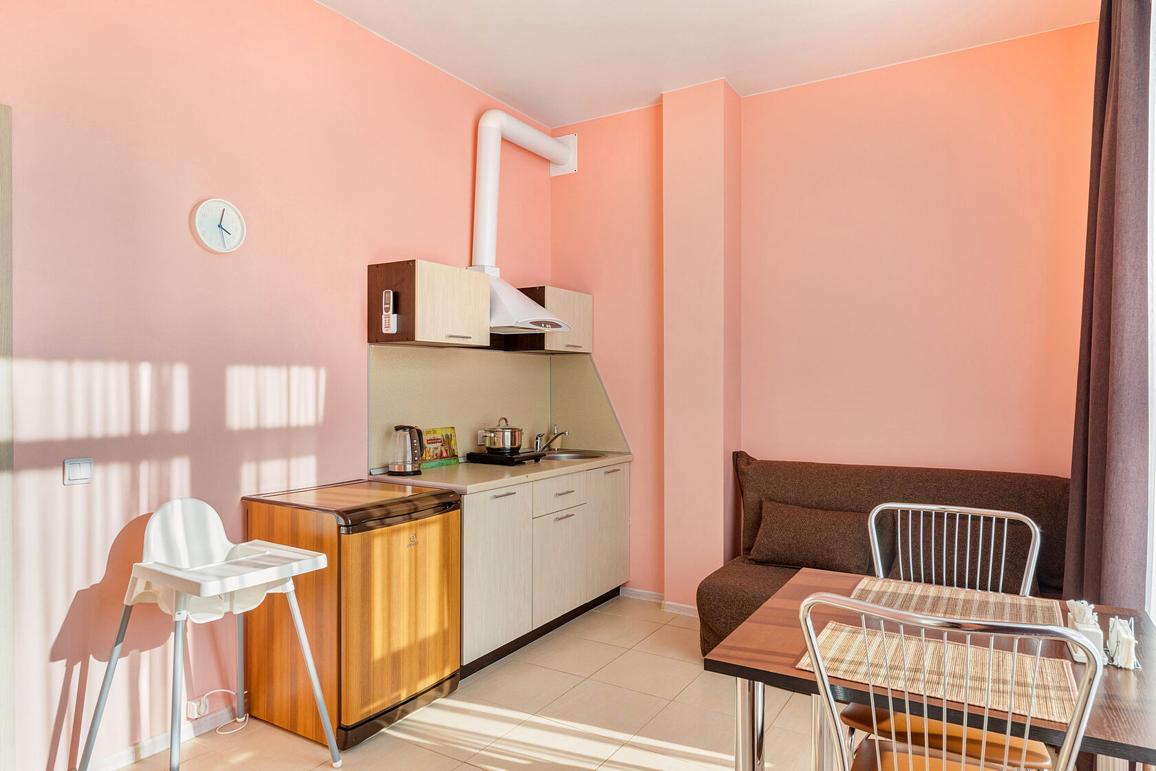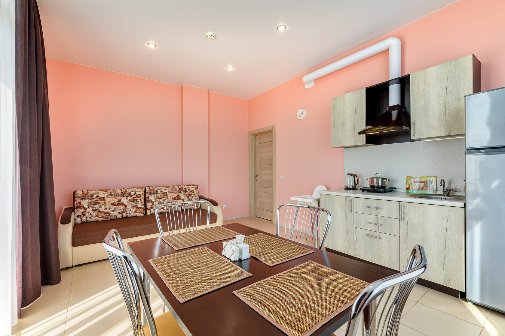 Вы получаете все удобства как в собственной квартире и при этом круглосуточный гостиничный сервис, который избавит Вас от забот на отдыхе. К Вашим услугам квалифицированный персонал, передовые гостиничные технологии и безопасность!