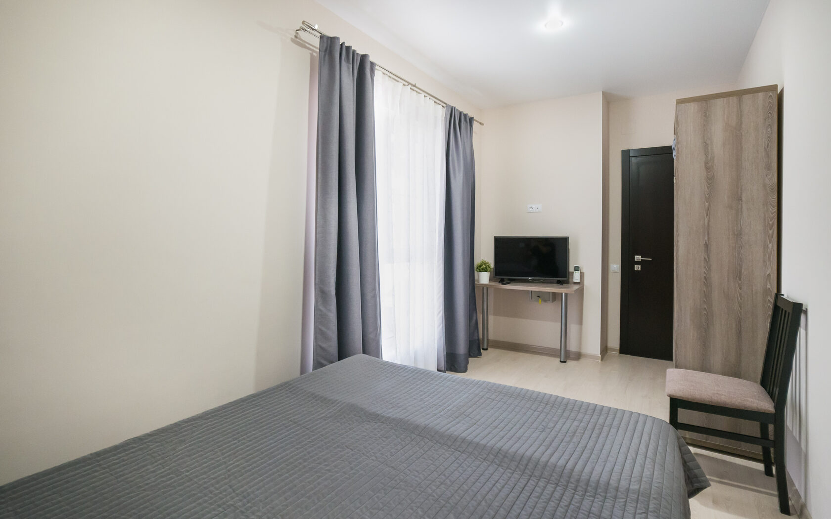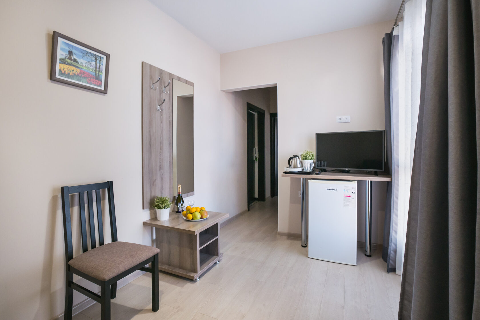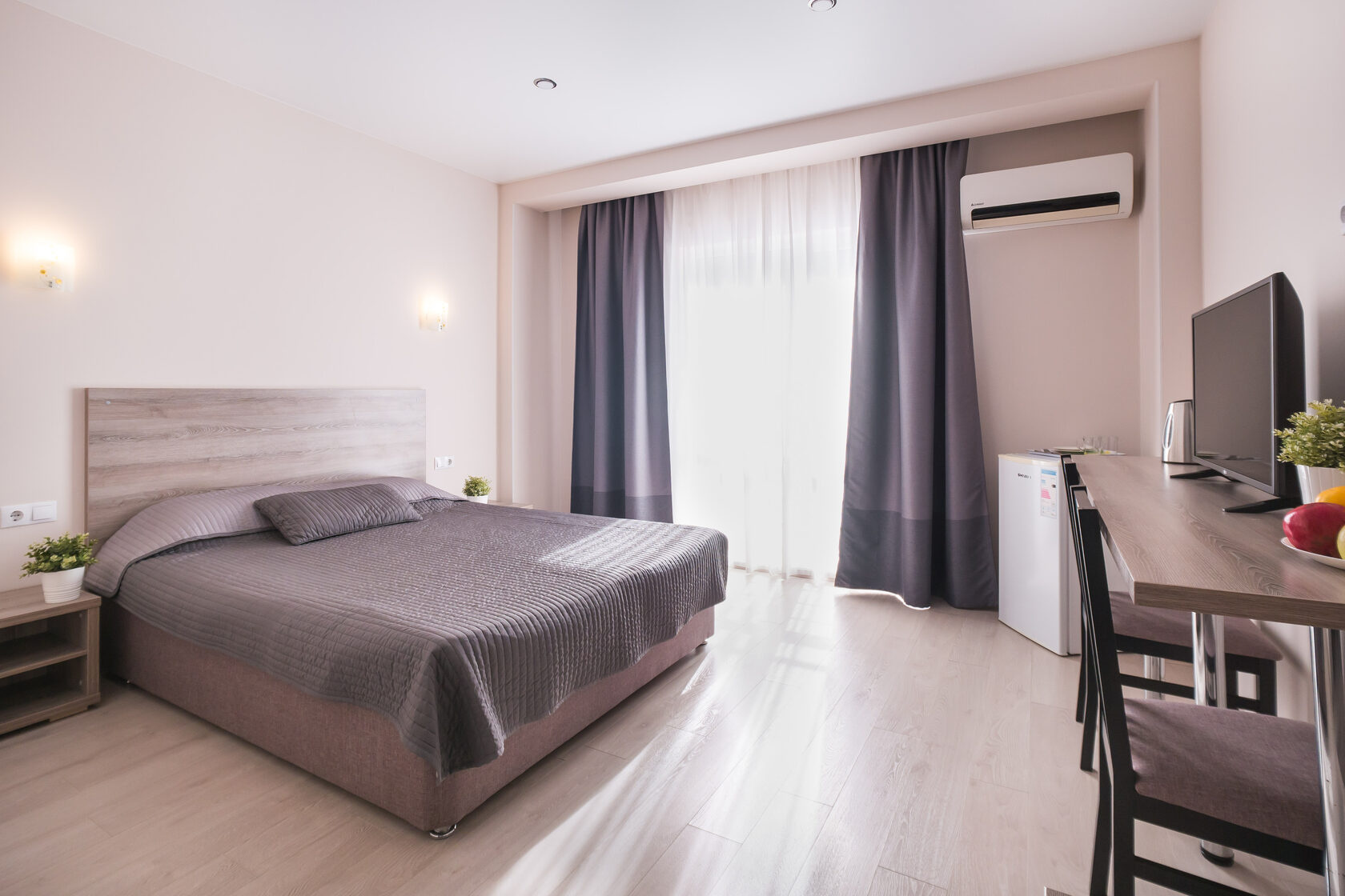 Номер отличный, есть все возможные удобства, хорошая звукоизоляция(а это важно, так как под окнами оживленная улица, где постоянно с басами машины курсируют). До моря, кафе, магазинов аптек от 2х до 5 минут пешком. Безопасность с ключом картой от калитки и номера, камеры в холлах. Очень внимательная, улыбчивая и вежливая администратор.