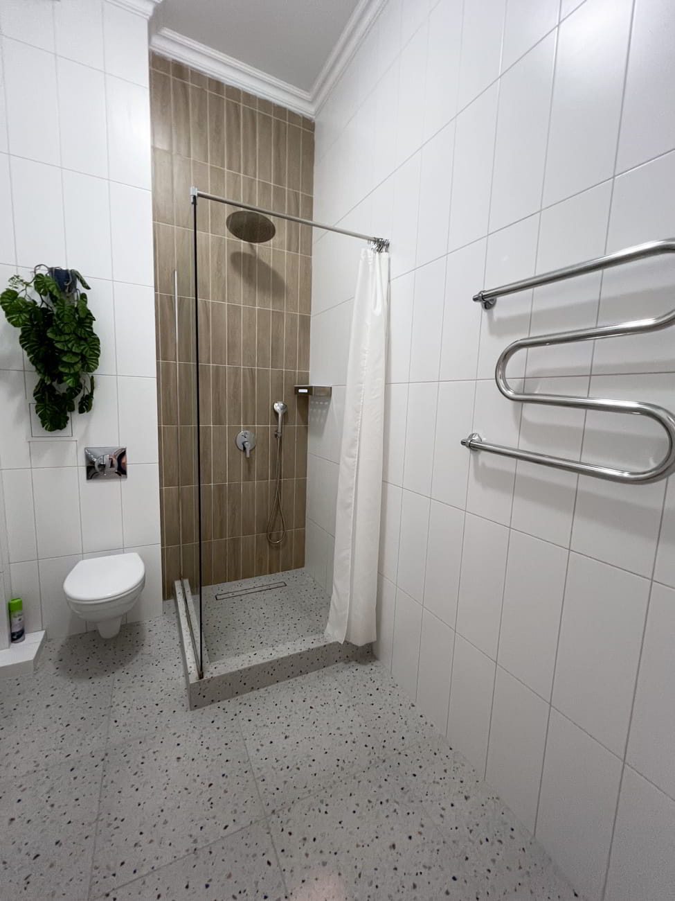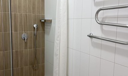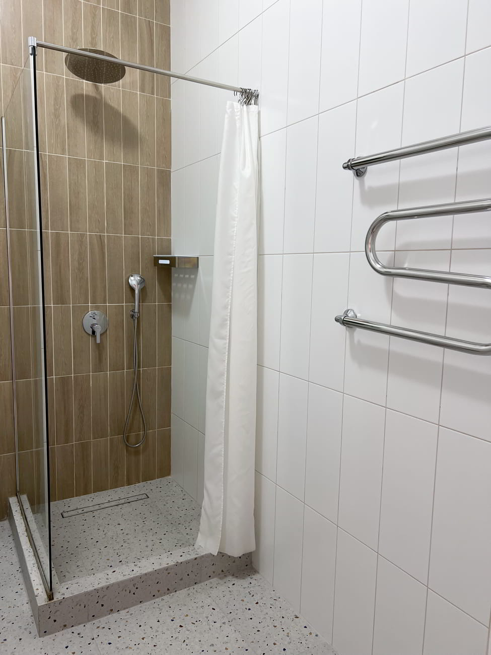 Душевая не герметичная, и вода выливается на кафель, можно очень здорово поскользнуться, если не быть осторожным.