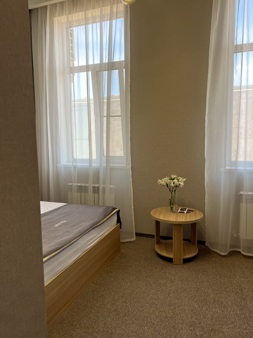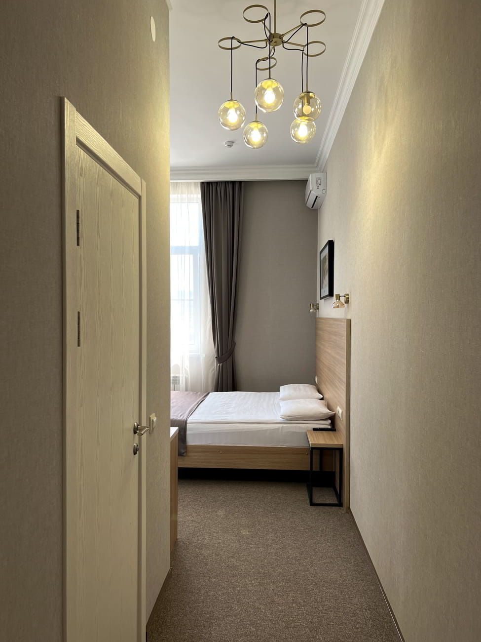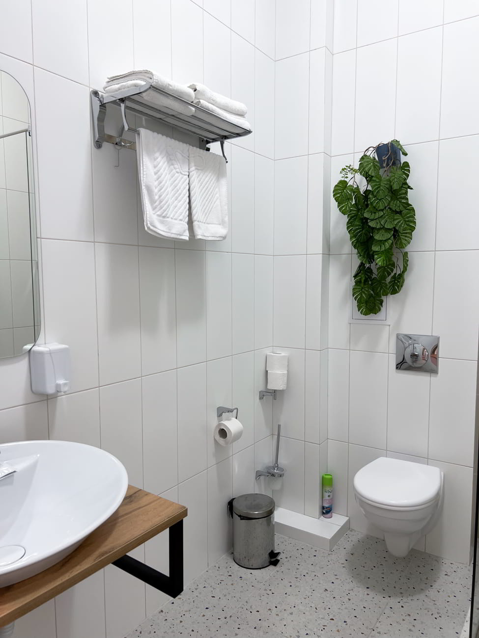 Отель заявлен как трёхзвёздночный, но по факту это уровень гостевого дома. Принадлежности для душа выдаются только один раз, уборку никто каждый день не делает, но мусор забрали, так как мы попросили. Завтраки- убожество, честное слово, растворимый кофе не лучшего качества, видимо на кофе- машину жаль денег. На всё это можно было бы закрыть глаза если бы не поведение хозяйки при выселении. Была начеку и ждала когда выйдем из номера и пока мы не ушли быстро побежала в номер проверять не украли ли чего... А что могли украсть? Застиранное в катышках постельное бельё и полотенца? Сюда точно не вернемся, только если вообще не будет вариантов.