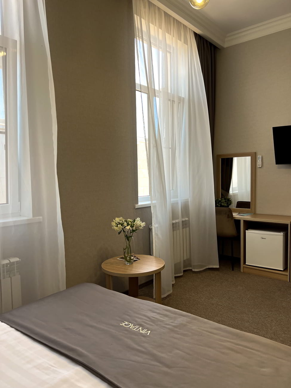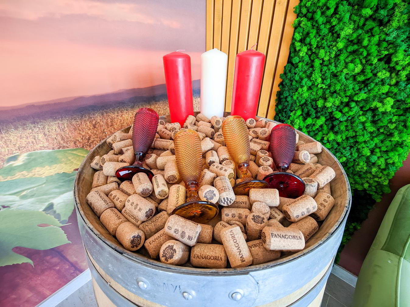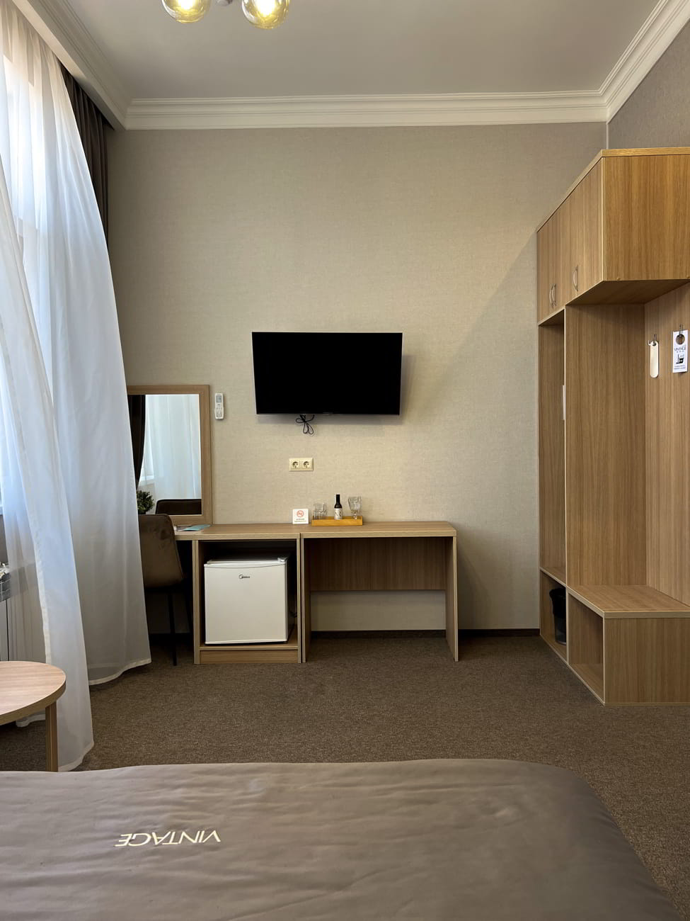 Как бонус, по приезду вас угощают бокалом шампанского. В номерах мини-версии вин Фанагории.