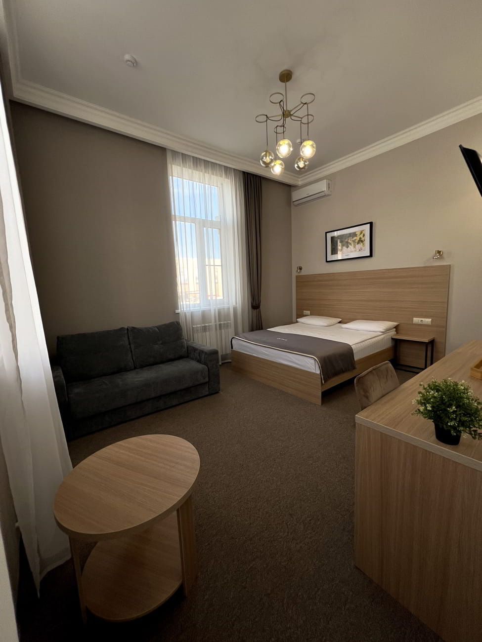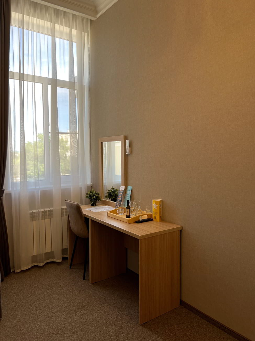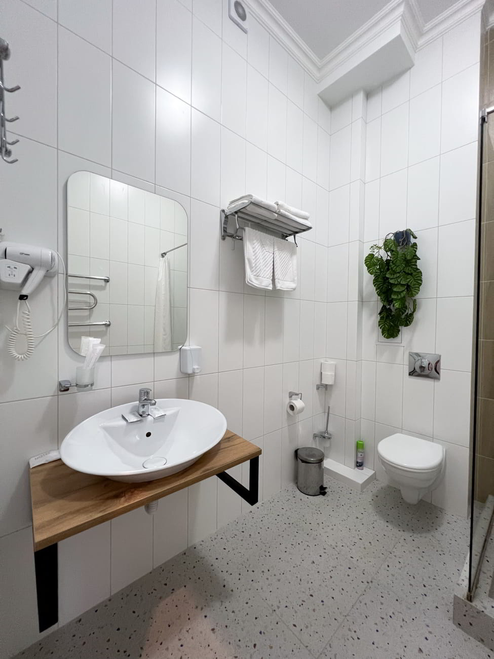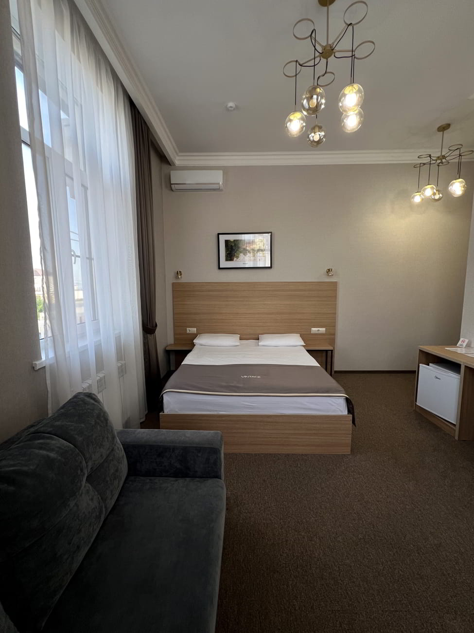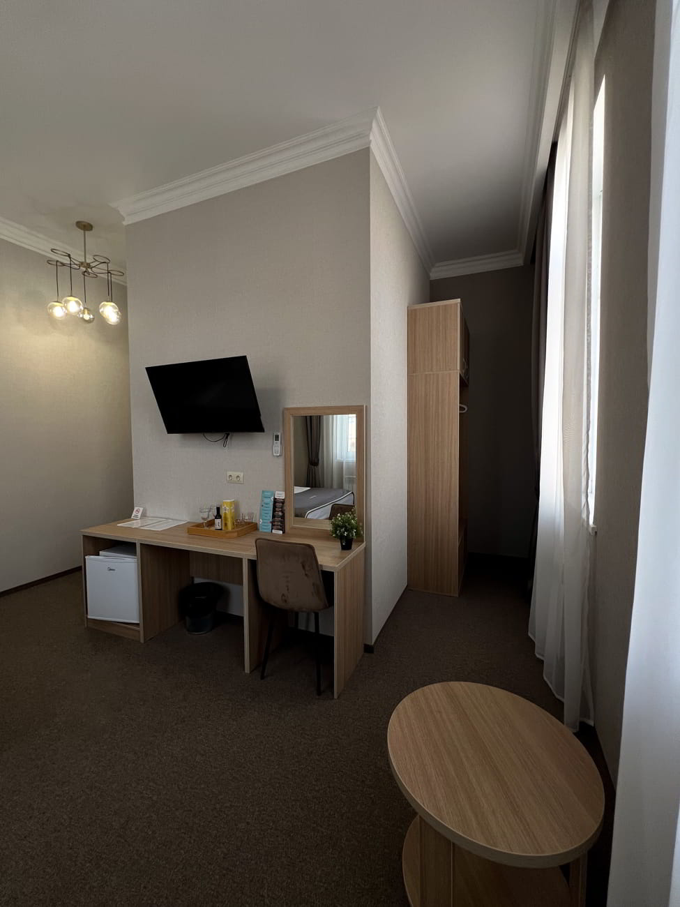 Выдают только один раз гель для душа и шампунь при заезде, что странно для отеля такого уровня. Есть терминал для оплаты картой, но просят оплатить налом или переводом, особенно за доп.услуги. Нет кофе-машины, на завтрак только растворимый кофе. В душе только тропический душ, нет отдельной душевой лейки, что не всегда удобно. Номер комфорт.