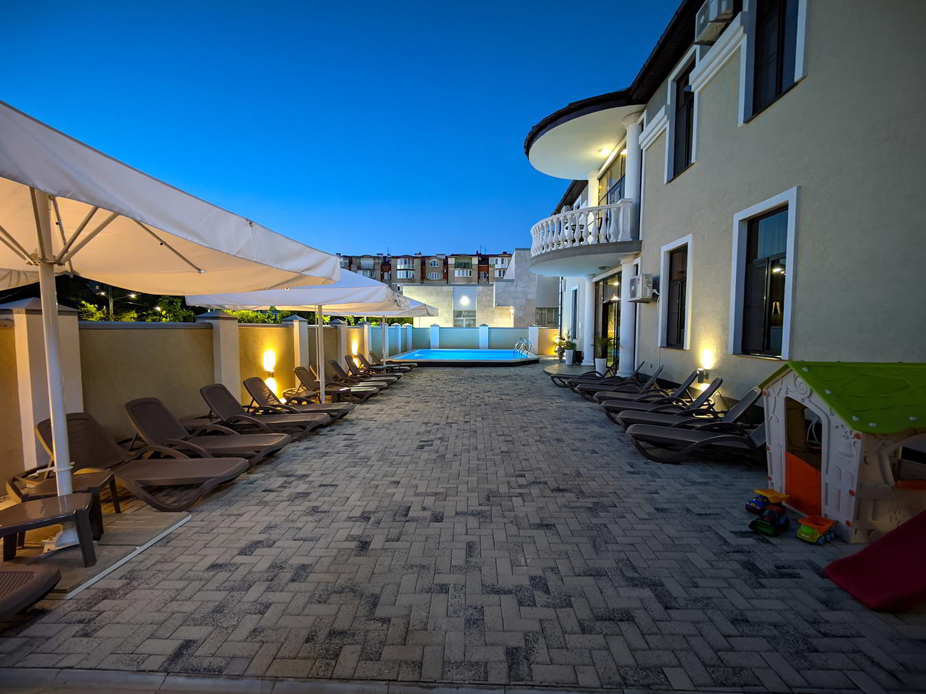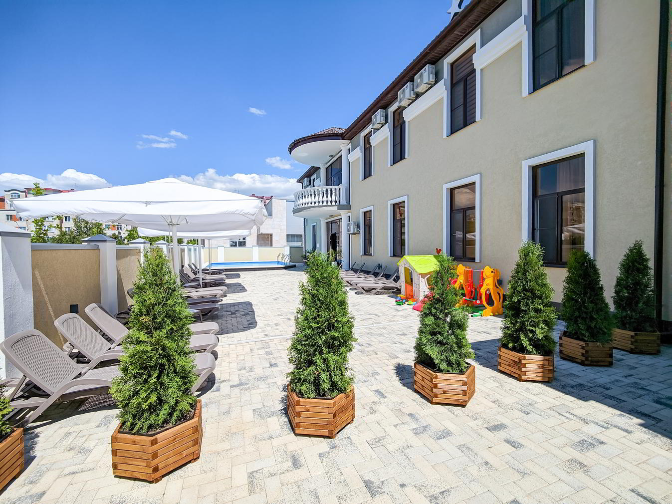 Отдых с ребенком самое то! Есть на территории детская комната с батутами и горками. Такого я еще не видела. Рядом хороший парк, набережная красивая. Отдыхали здесь два года назад и вернулись в этом году. Расположение на высоком берегу, для меня ленивой до моря долго идти. Но есть подогреваемый басен с в отеле. В общем море и не нужно. Персонал приветливый, администратор Анастасия решала все наши вопросы на протяжении 6 дней)