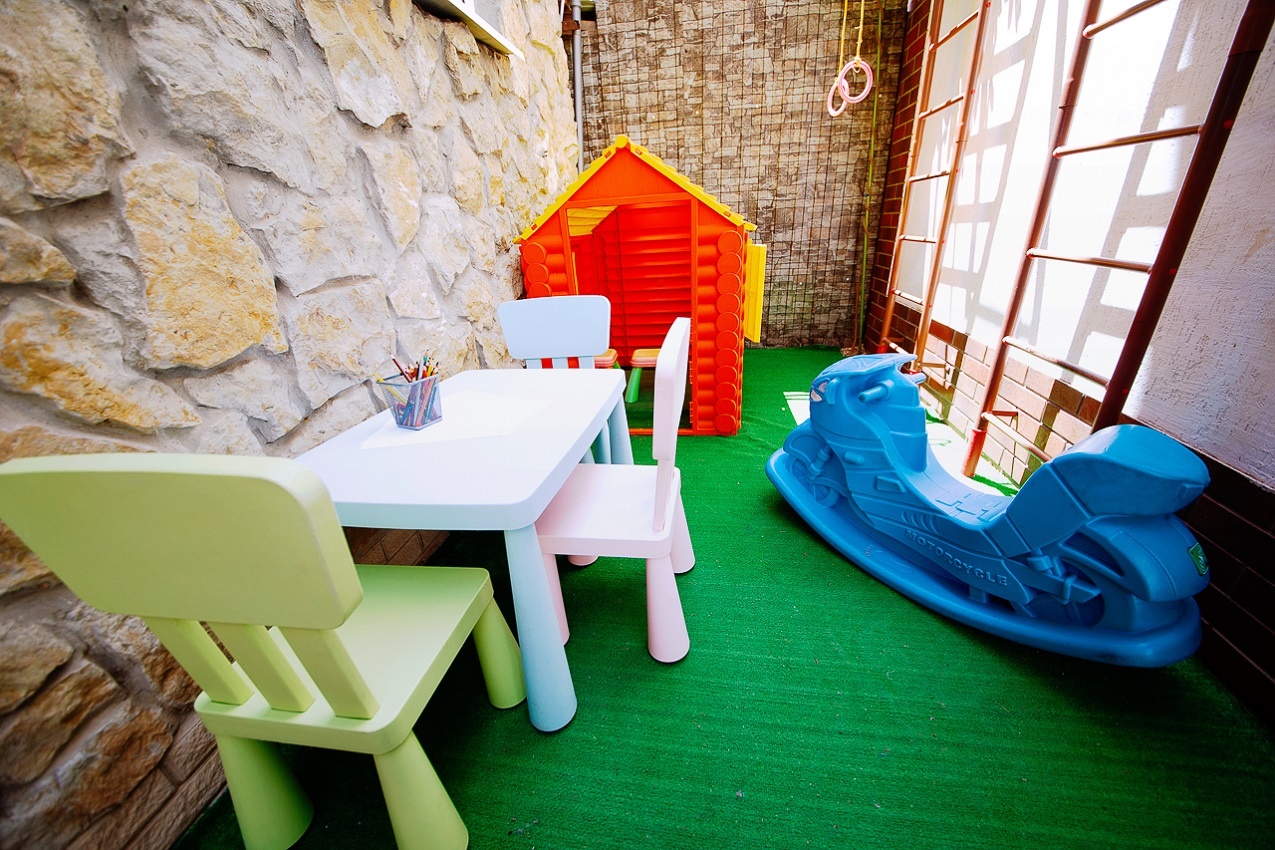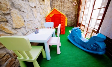 На территории нашего гостевого имеется зона отдыха, а также небольшой лестничный комплекс для наших маленьких гостей. Детей мы принимаем с любого возраста.