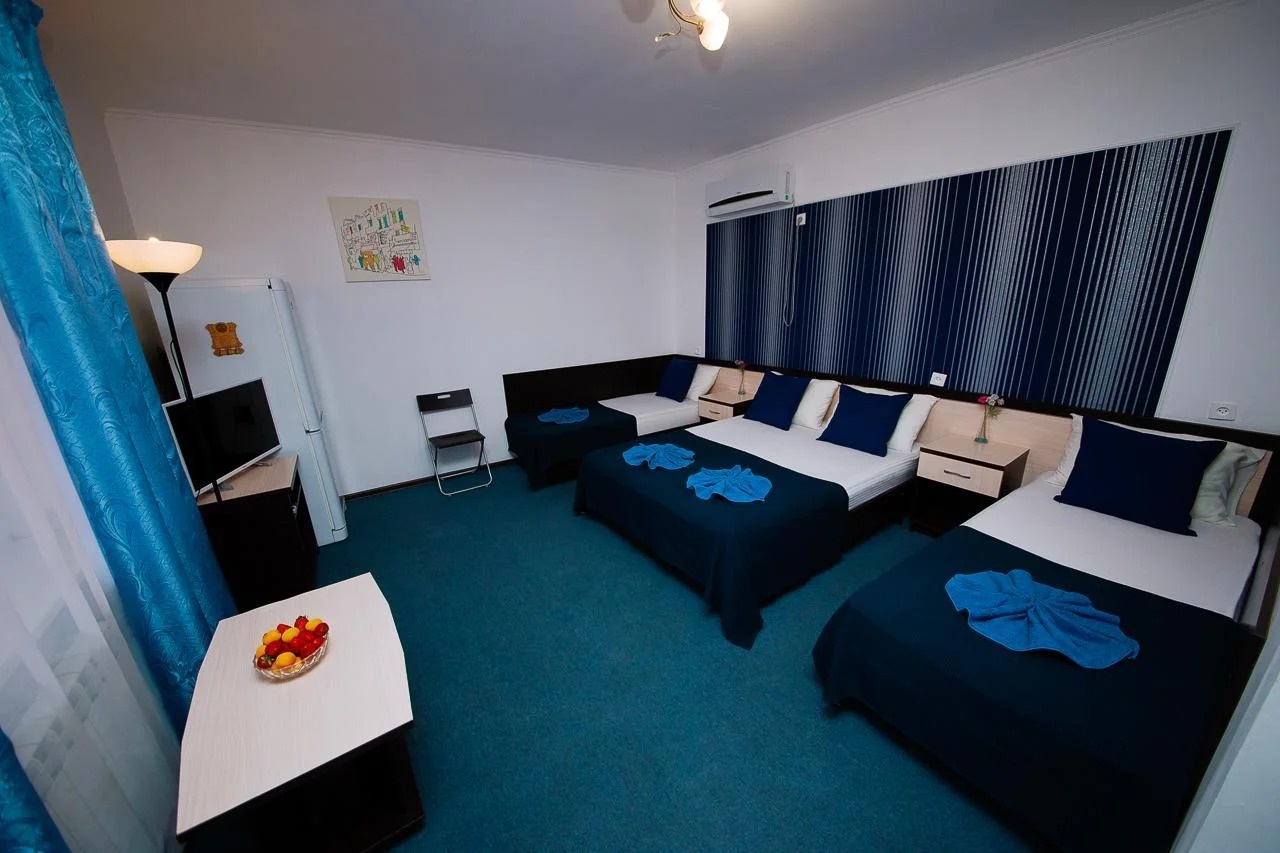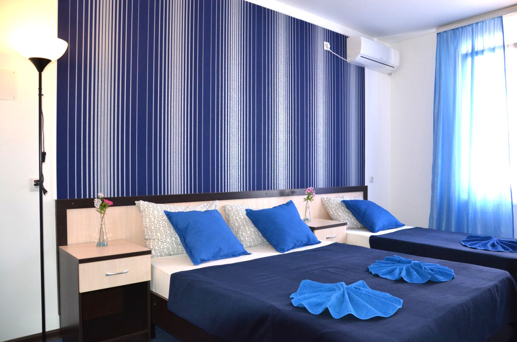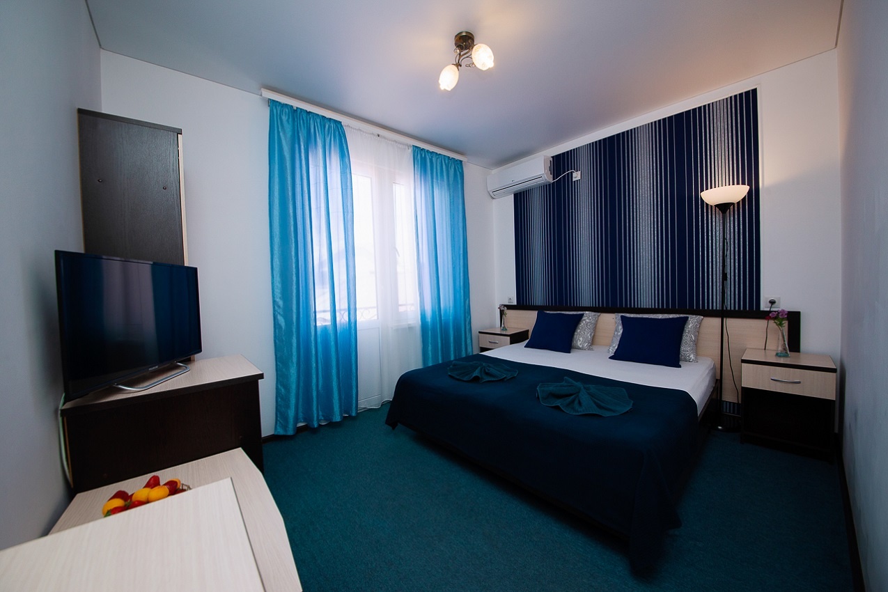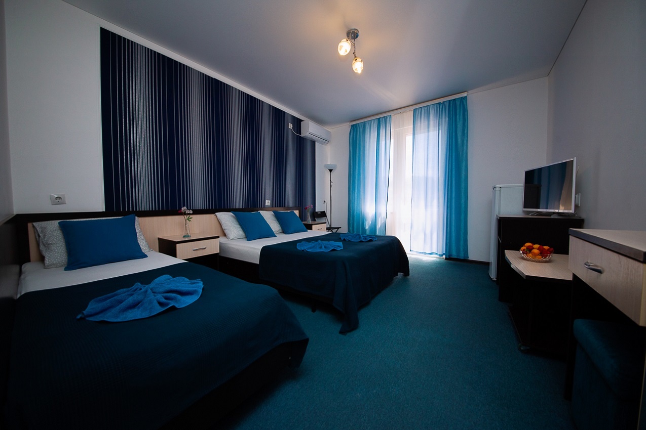 Для размещения наших гостей мы предлагаем номера категории «Полулюкс», рассчитанные на проживание 2-х, 3-х и 4-х человек. Все номера в нашем гостевом доме оборудованы в соответствии со всеми современными гостиничными требованиями. Здесь есть всё для создания комфорта и уюта. В каждом номере ванная/душ, туалет со всеми банными принадлежностями, сплит-система, телевизор, холодильник, сейф. Некоторые номера имеют “французский балкончик”. В каждом номере производится ежедневная уборка.