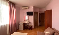 Одноместный номер, размещение до 2-х человек: 1,5 спальная кровать; Холодильник; ЖК телевизор; Душ, туалет; Wi-Fi; сплит-система; Чайник, минимальный набор посуды; Сушилка для белья; Наши номера очень уютные, чистые и полностью укомплектованы для хорошего отдыха! Ждём вас в гости