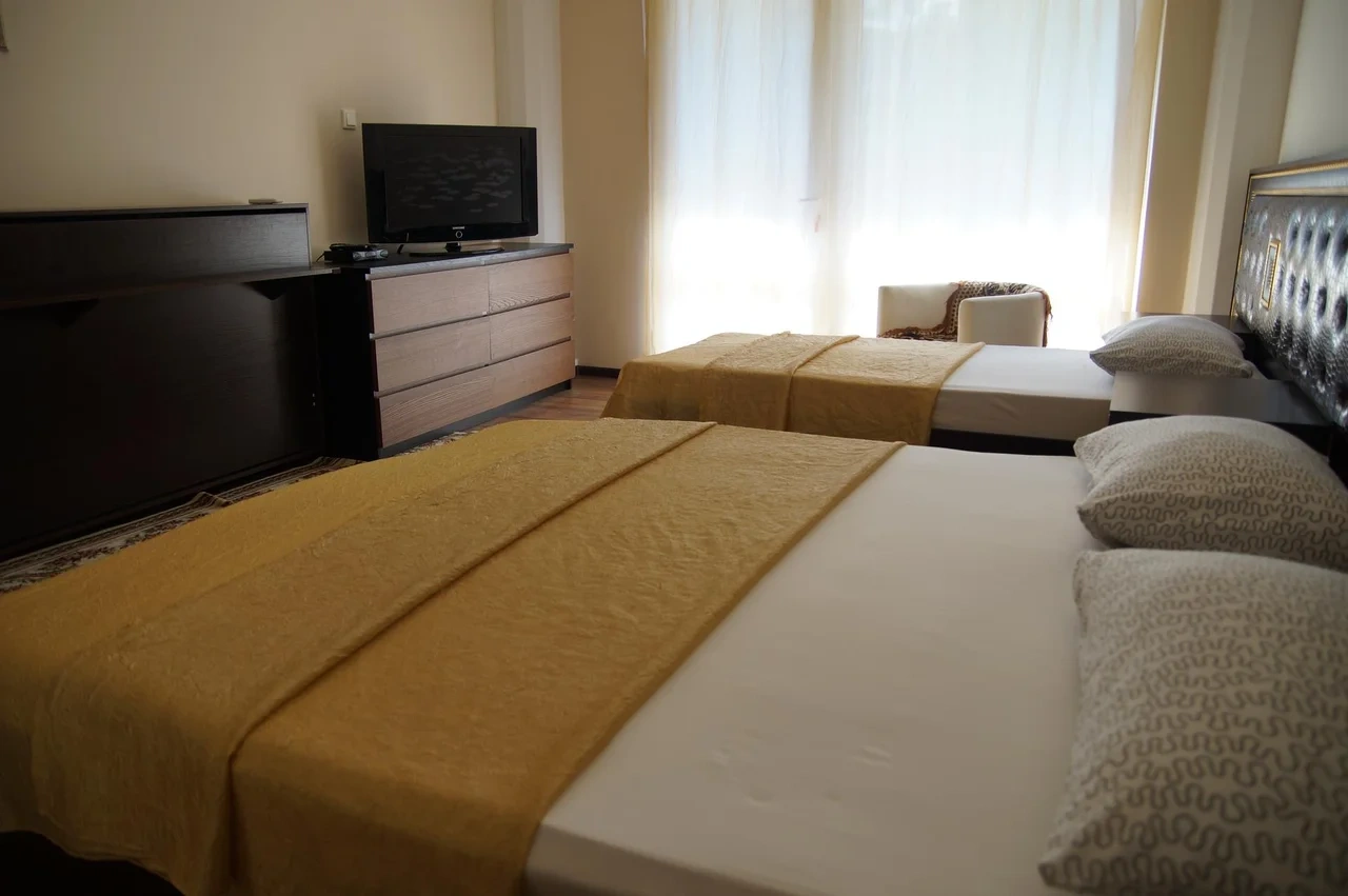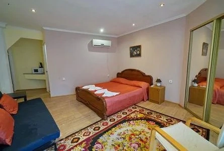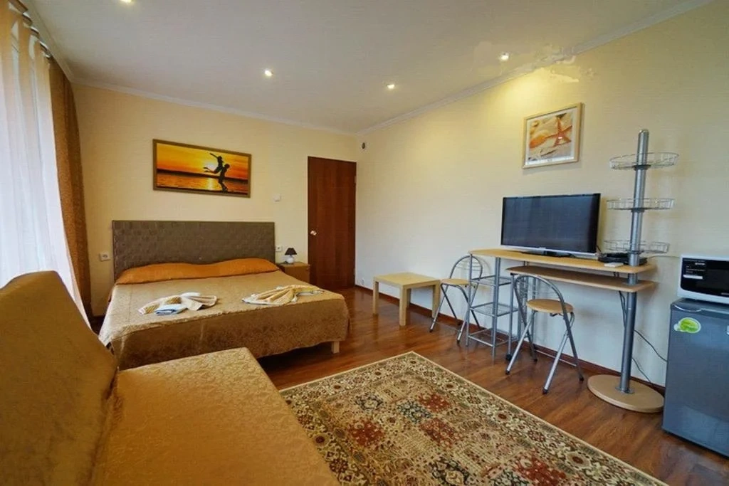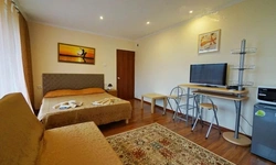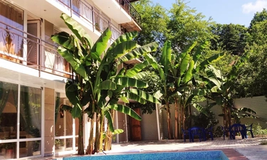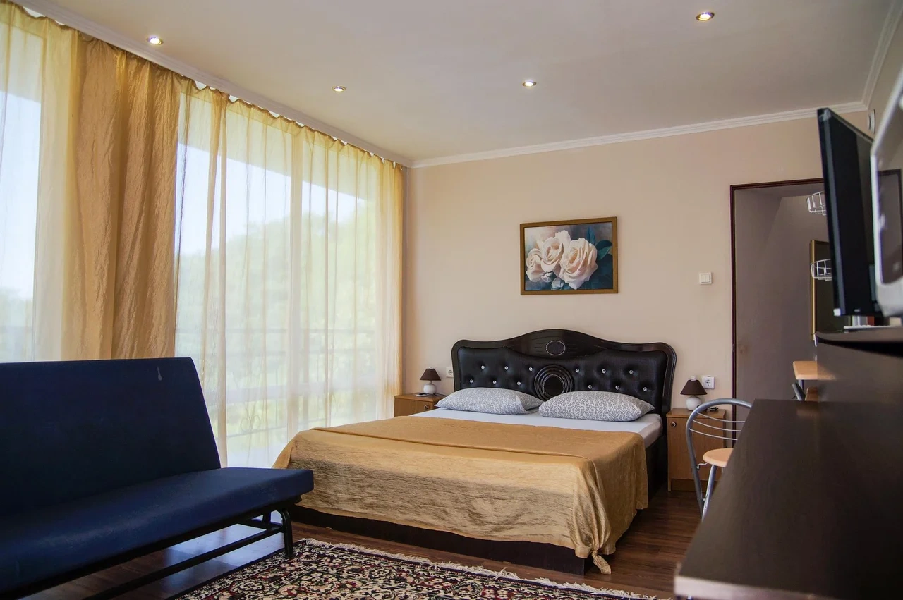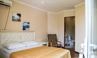 Еда очень вкусная, успела только позавтракать, но уже понравилась очень сырники и кофе Уютный был номер, на территории есть бассейны очень удобно если не хочешь идти на море, территории очень зелёная и приятно на ней находиться, понравилось все В номере было чисто, также очень приятный персонал Встретили меня с вокзала сами хозяева, хоть приезжала рано утром, очень приятно
