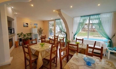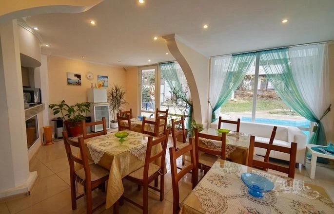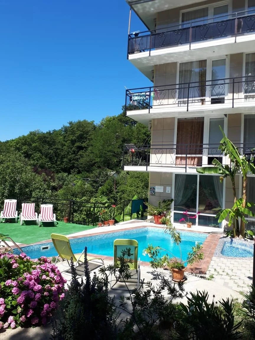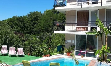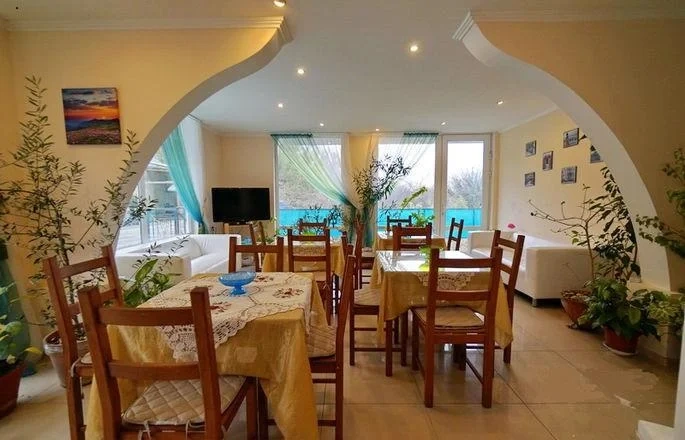 Ехать очень тяжело. Однополосное движение со спусками и подъемами. Не вкусно готовят. Дорогая цена за питание. Кровать ужасная! Спали как будто ногами вверх, хотя у нас номер был люкс. Постельное белье свежее, но простынь не в размер кровати и постоянно сползала. В номере грязная посуда и вообще очень грязно! Чистая только середина номера. Артур нас встретил, пошёл водить по территории, столовая, бассейны, цветочки, хотя мы сразу сказали, что нам бы поскорее поспать, устали с дороги. Но нам как будто хвастались своим домом. Плесневелым бассейном, домом, что ходит ходуном, тропинкой через лес к морю. Вообщем ужасный дом! Не выспалась, так как шторы не все рано заказывают, слышимость сильная, если кто то ходит в другом номере и говорит, то вас качает от его шагов и вы все разговоры слышите…Жесть…