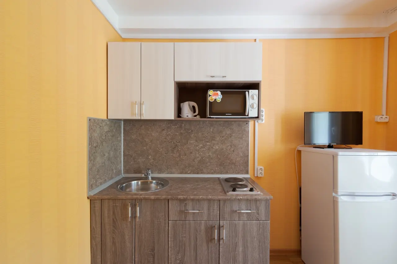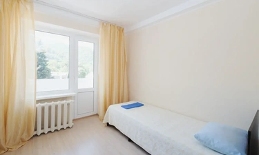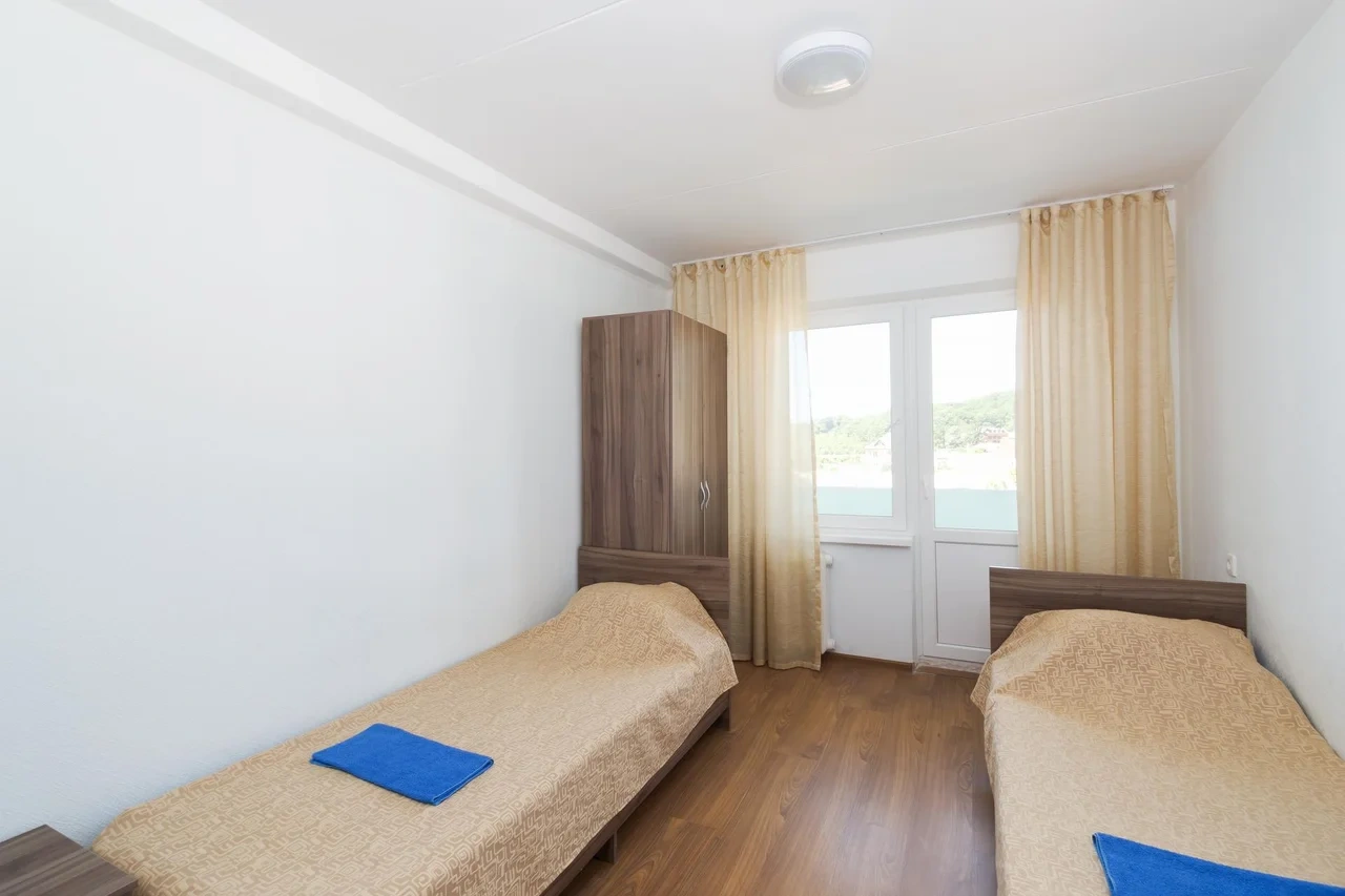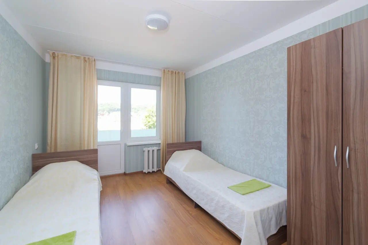 2-х комнатные апартаменты с кухней, укомплектована односпальными кроватями, кондиционером, телевидением, балконам, санузлом с душем