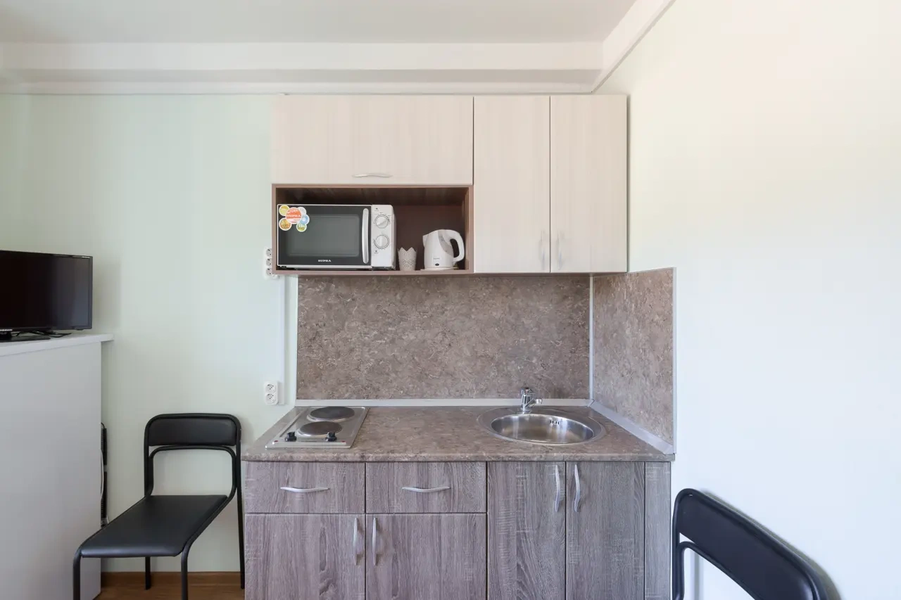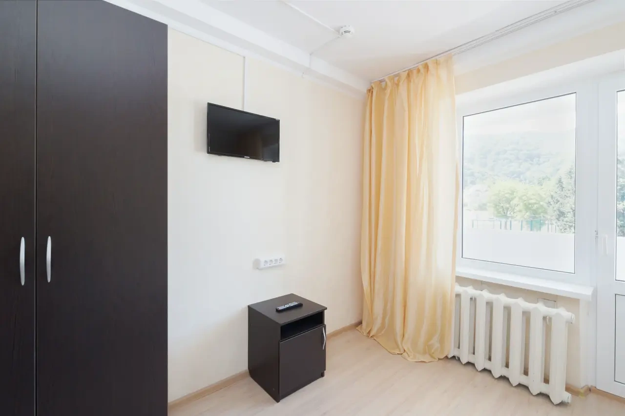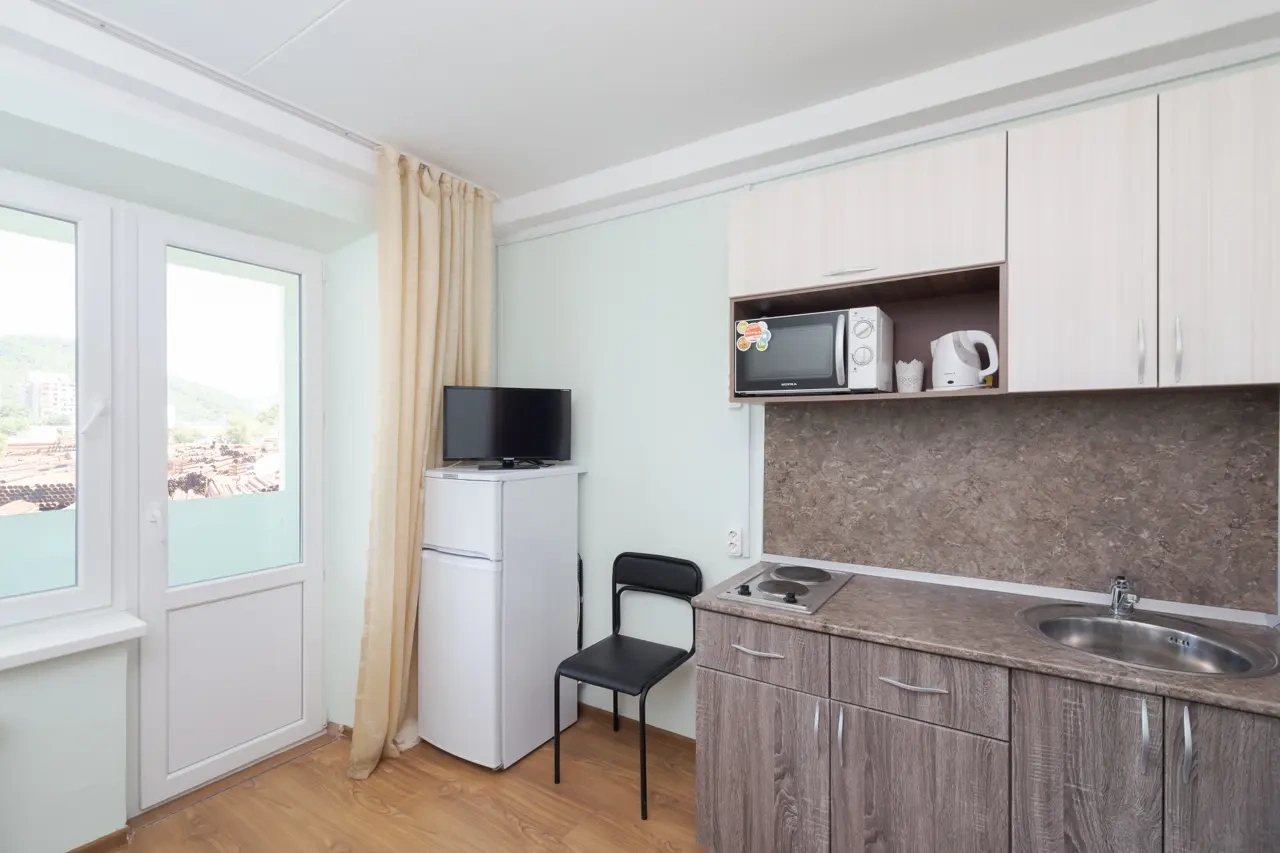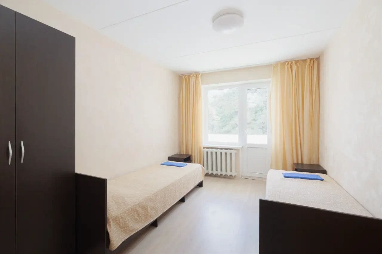 2-х комнатные апартаменты с кухней, укомплектована односпальными кроватями, кондиционером, телевидением, балконам, санузлом с душем