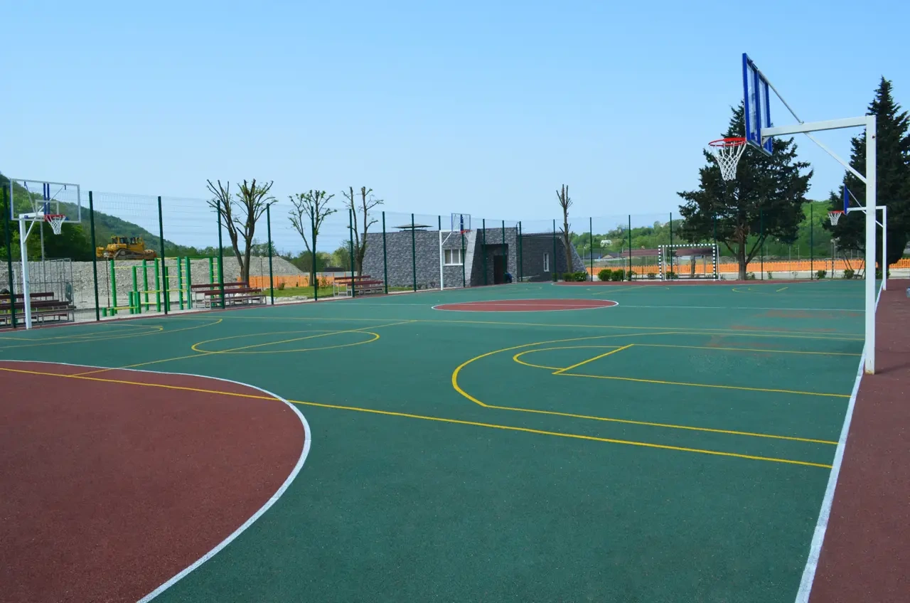 • Универсальная площадка с резиновым покрытием для 4 видов спорта размером 44х22
