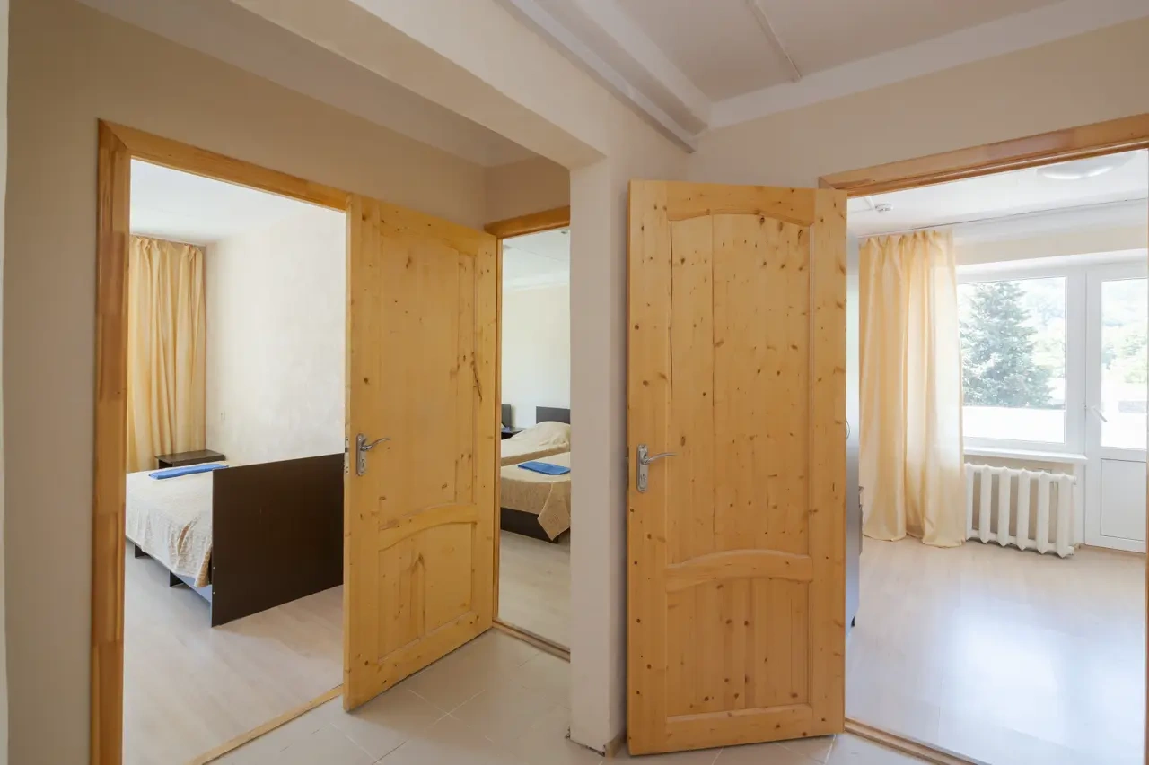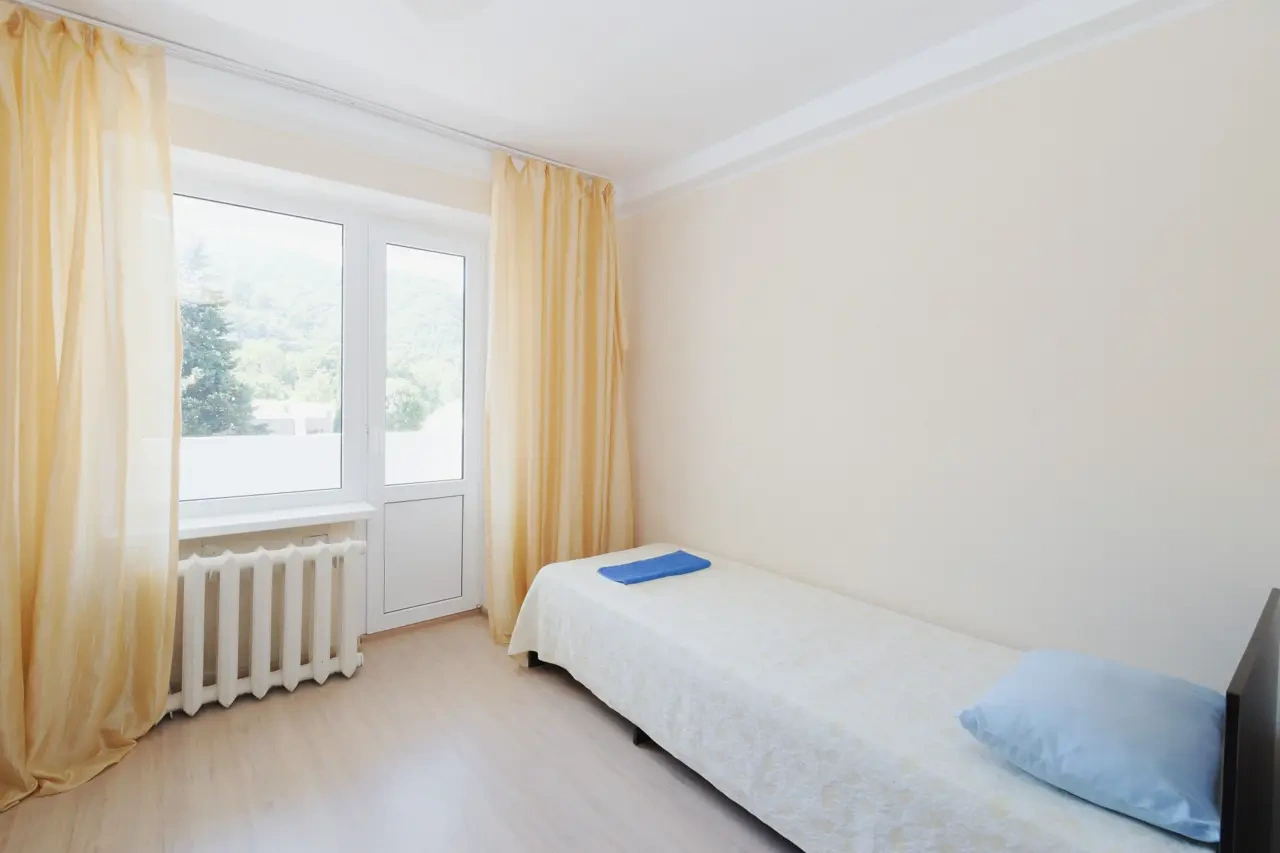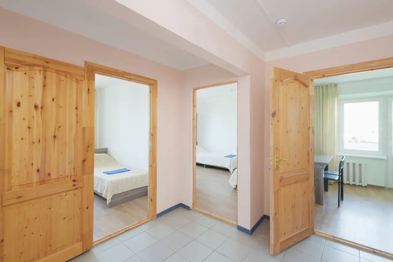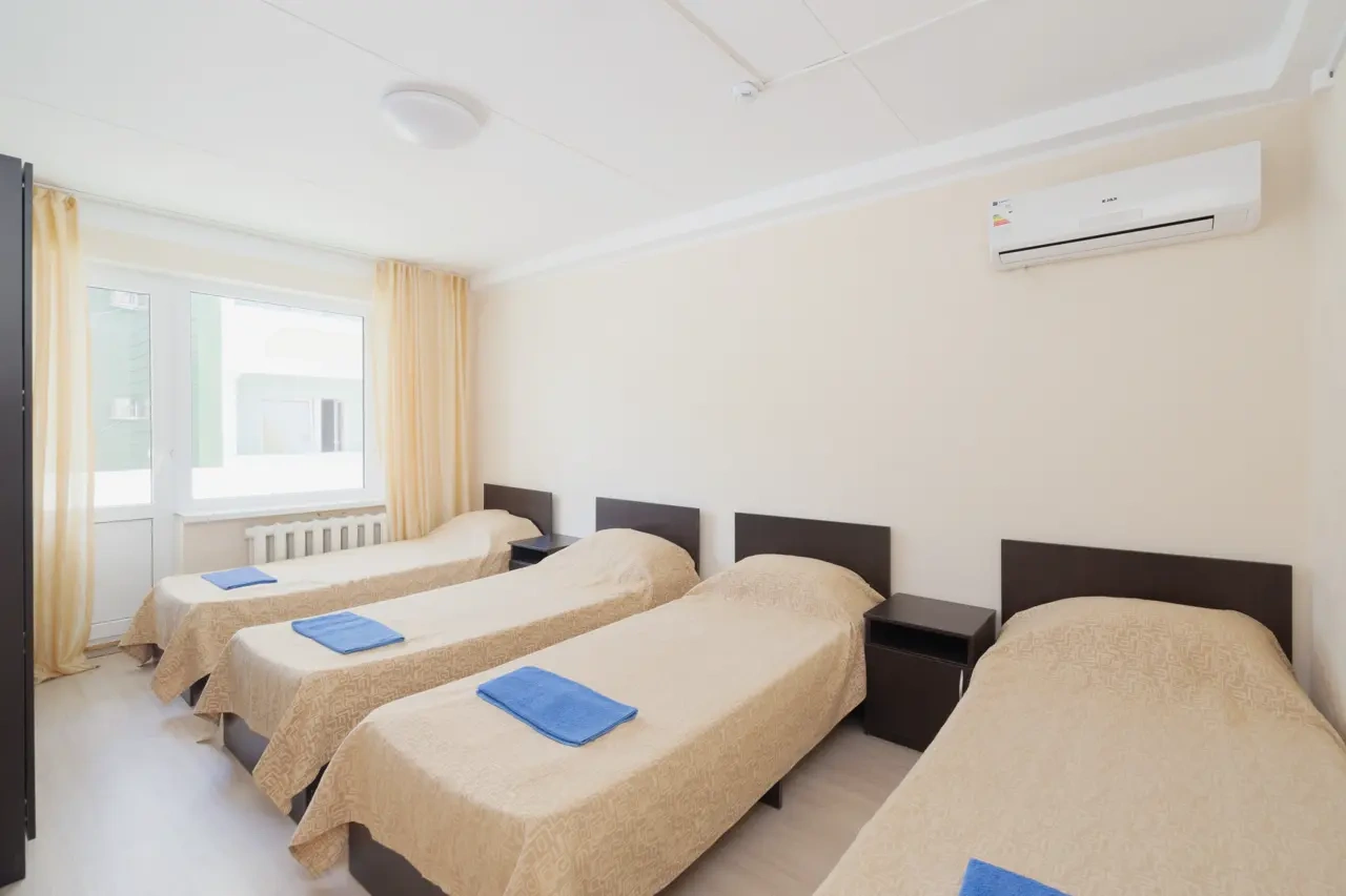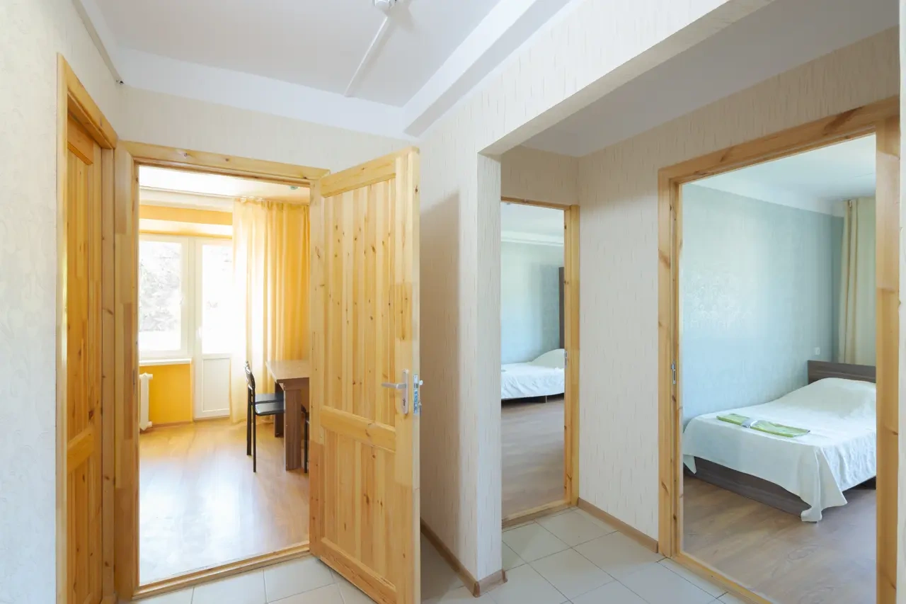 3-х комнатные апартаменты с кухней, укомплектованы односпальными кроватями, кондиционером, телевидением, балконам, санузлом с душем