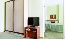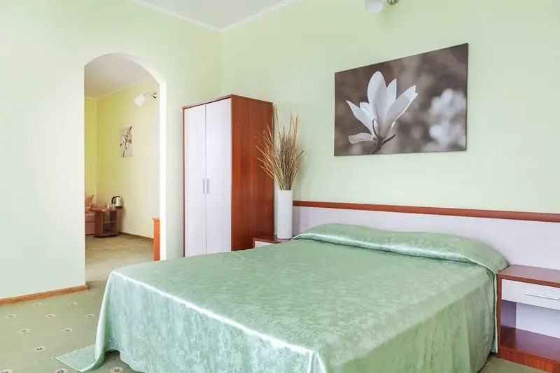 Семейный 2-х комн., 3-х мест.,вид на море В номере: 2-х спальная кровать, раскладное кресло, санузел (душевая кабина, туалет), мини-холодильник, фен, чайник, сплит-система, телефон, телевизор ЖК, балкон, оборудованный мебелью, доп. место – раскладное кресло, евро раскладушка Квадратура номера - 40 кв. Дополнительное место- раскладное кресло, евро раскладушка Дети до 5-ти лет принимаются бесплатно без предоставления отдельного спального места и питания. При заселении,НАЛИЧНЫЙ РАСЧЕТ.