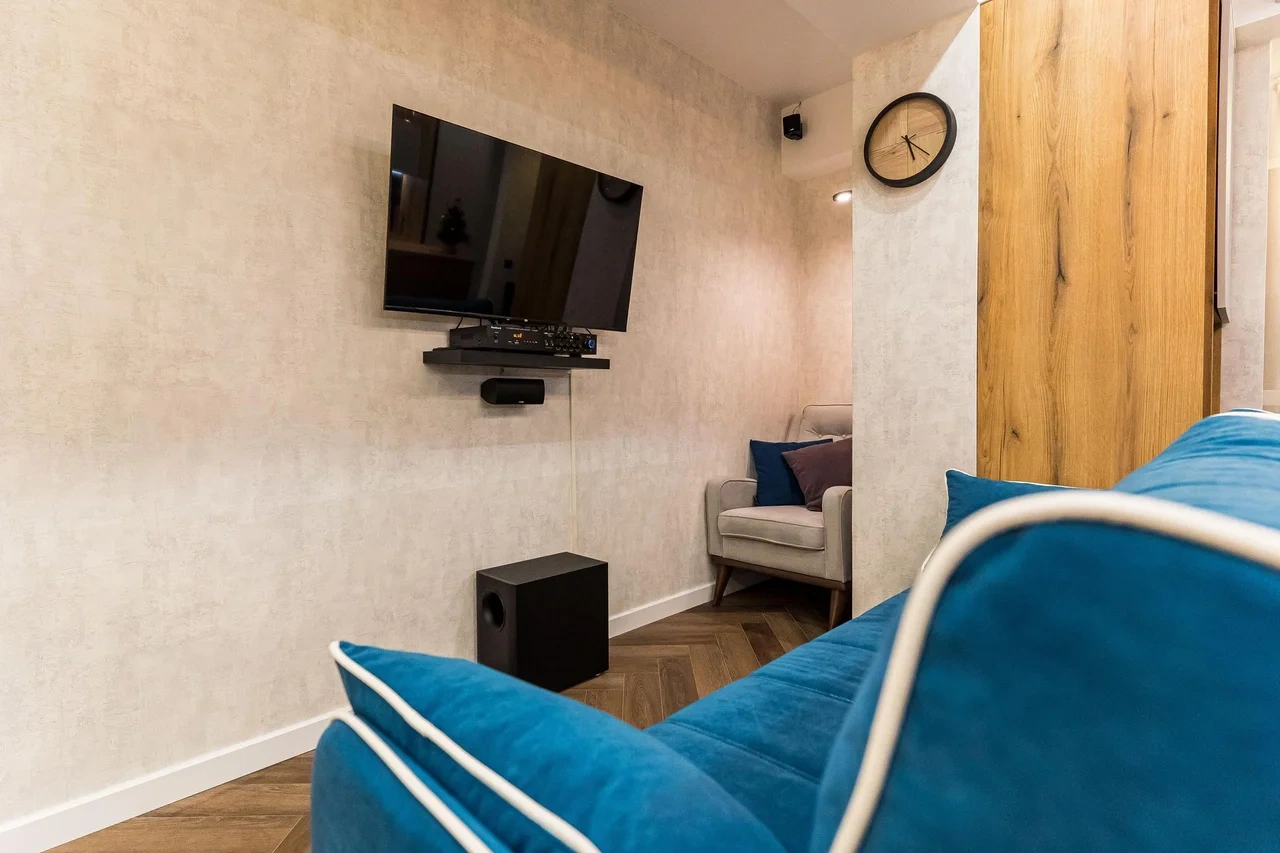Из квартиры открывается прекрасный живописный вид на море и на горы. До центра города — 7 км или 10 минут спокойной езды.