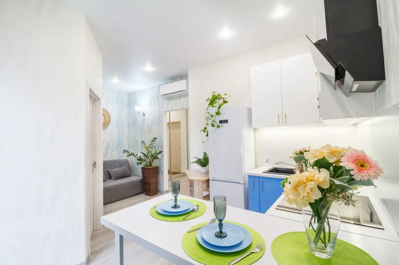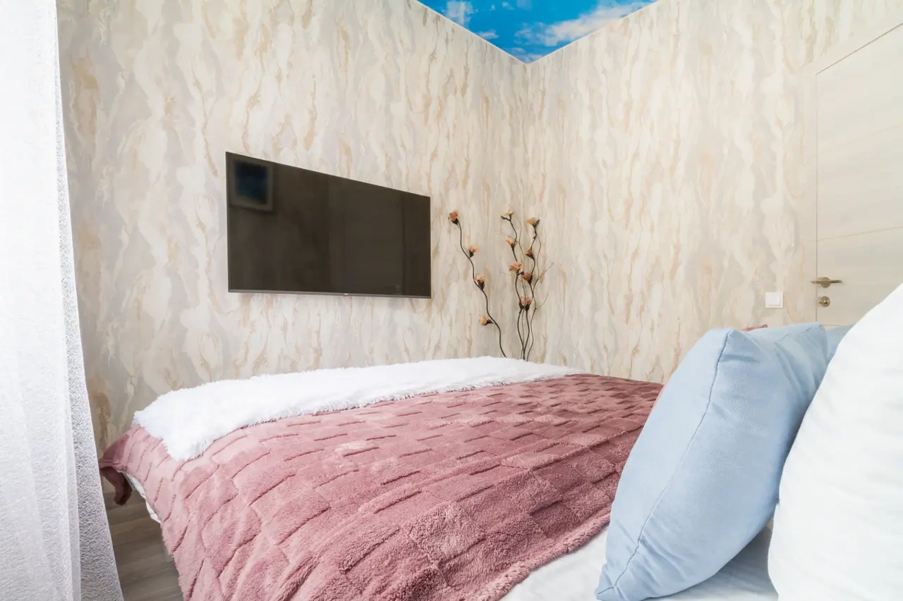 Наша квартира оборудована всем необходимым для комфортного пребывания: удобная двуспальная кровать с ортопедическим матрасом, чтоб Вы могли выспаться после тяжёлой дороги, Smart TV, с пакетом цифровых каналов, идеально подходящие для отдыха и развлечений. Полностью оборудованная кухня и наличие необходимой посуды позволят вам приготовить свои любимые блюда или просто сделать себе чашечку кофе утром. Для тех, кто работает даже во время отдыха, есть удобный рабочий стол и высокоскоростной интернет, что позволит вам быстро решать текущие рабочие задачи