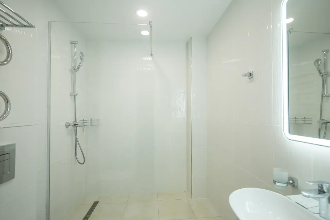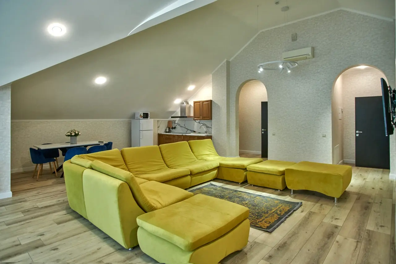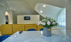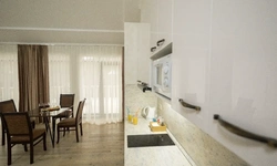 Просторный номер с двумя спальнями, в каждой из которых есть собственная ванная комната. В номере также есть уютная гостиная с большим комфортным диваном и собственной кухней. В номере есть холодильник, чайная станция (чай и сахар предоставляются), микроволновая печь и варочная панель, полный набор посуды, бутилированная вода, сейф, телевизор в каждой спальне и гостиной. Ванная комната укомплектована косметическими принадлежностями, набором полотенец, халатом и тапочками. Во всех номерах отеля есть балконы. В стоимость включено посещение открытого подогреваемого бассейна, тренажерного зала, сауны и хамам.