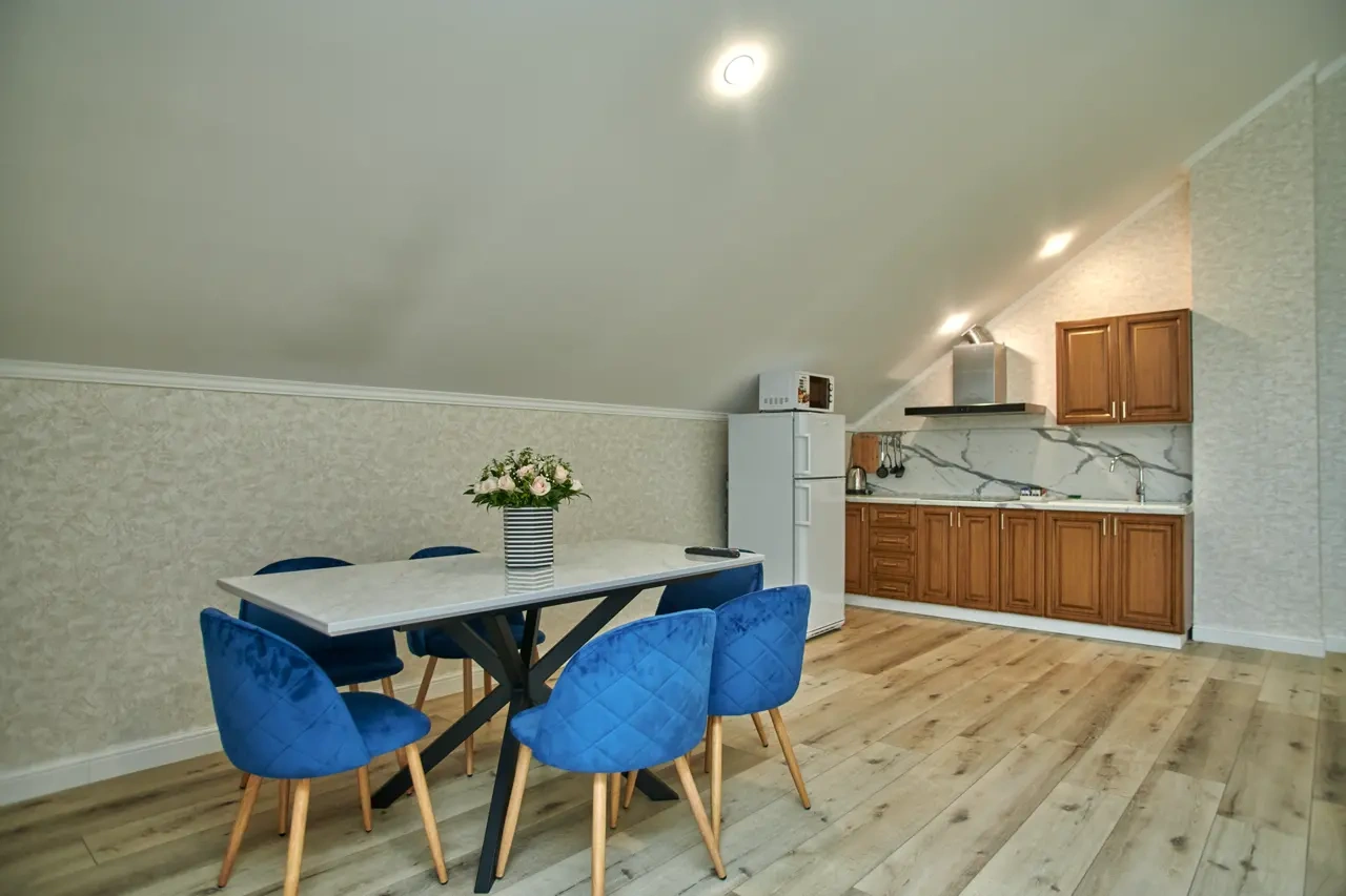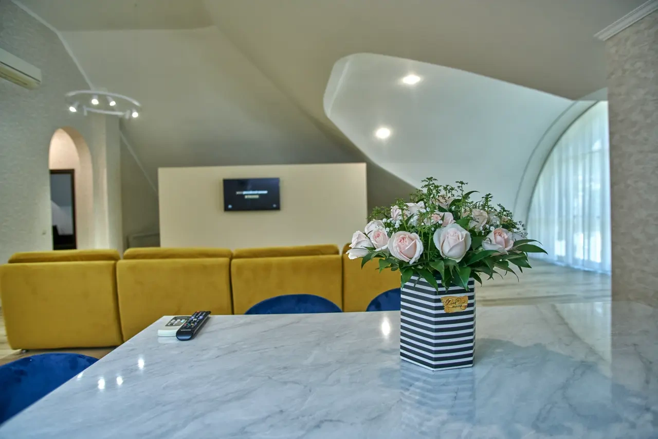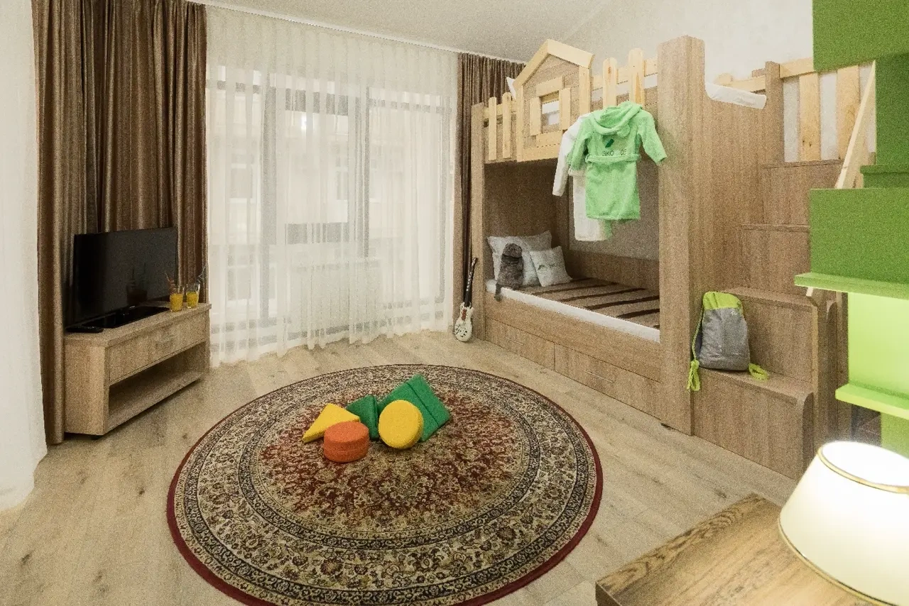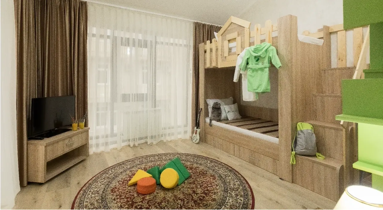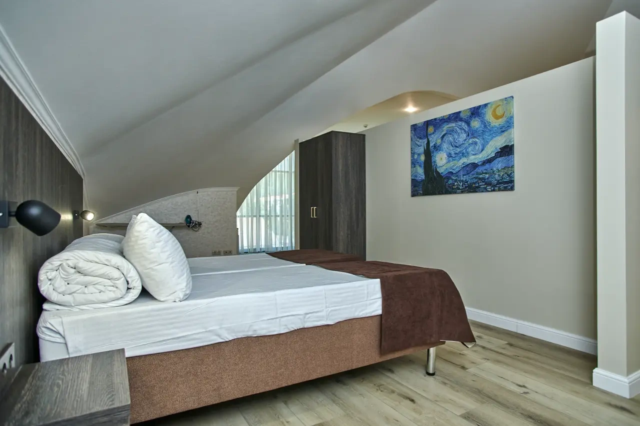 Комфортный двухкомнатный номер с двумя полноценными спальнями. Отлично подойдет для большой семьи или компании. В номере есть минихолодильник, чайная станция (чай и сахар предоставляются), бутилированная вода, сейф, телевизор в каждой спальне.. Ванная комната укомплектована косметическими принадлежностями, набором полотенец, халатом и тапочками. Во всех номерах отеля есть балконы. В стоимость включено посещение открытого подогреваемого бассейна, тренажерного зала, сауны и хамам.