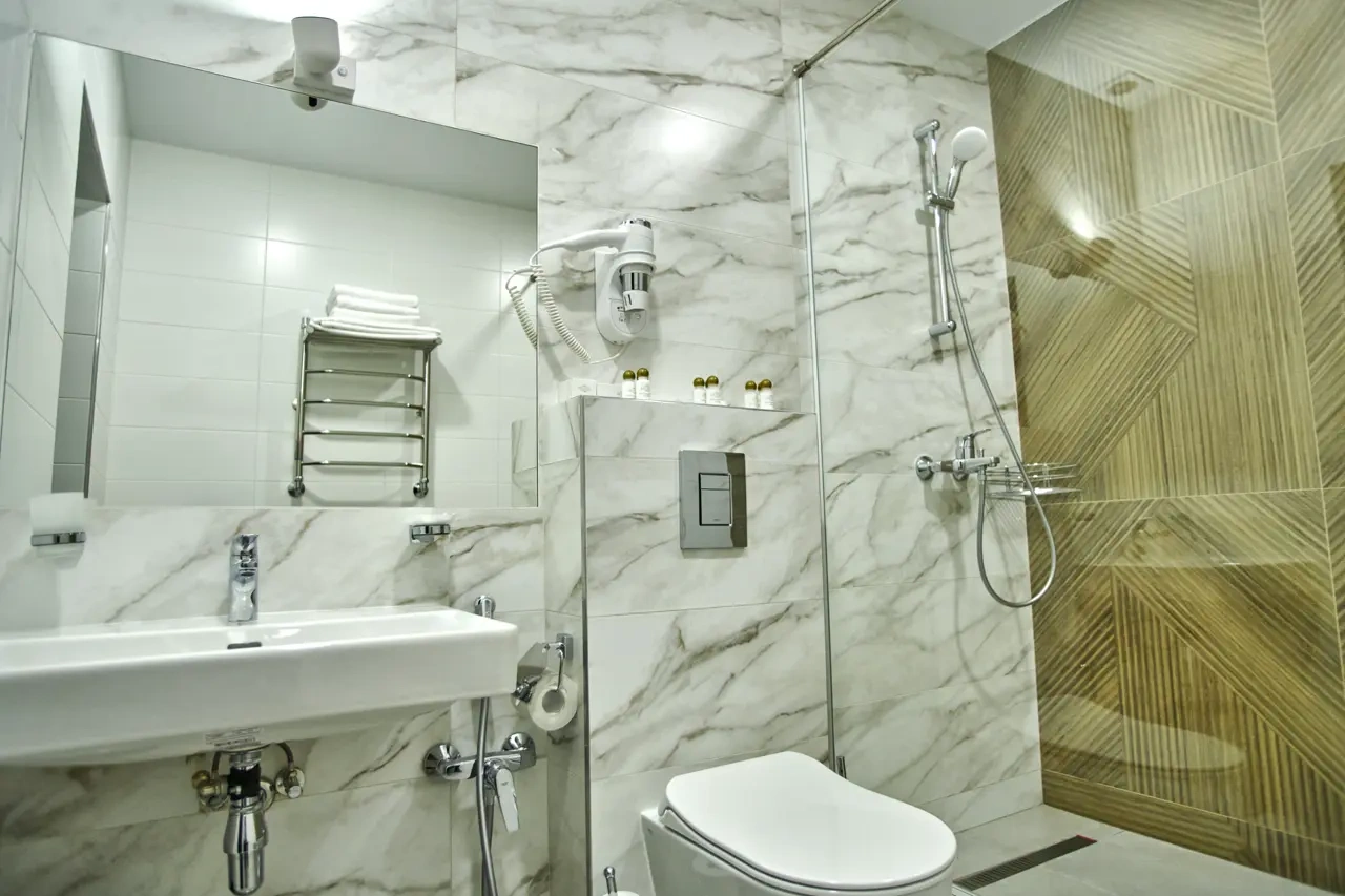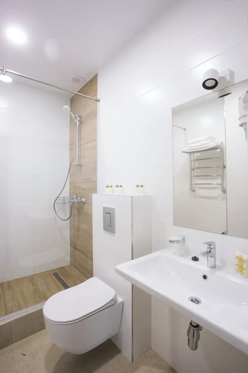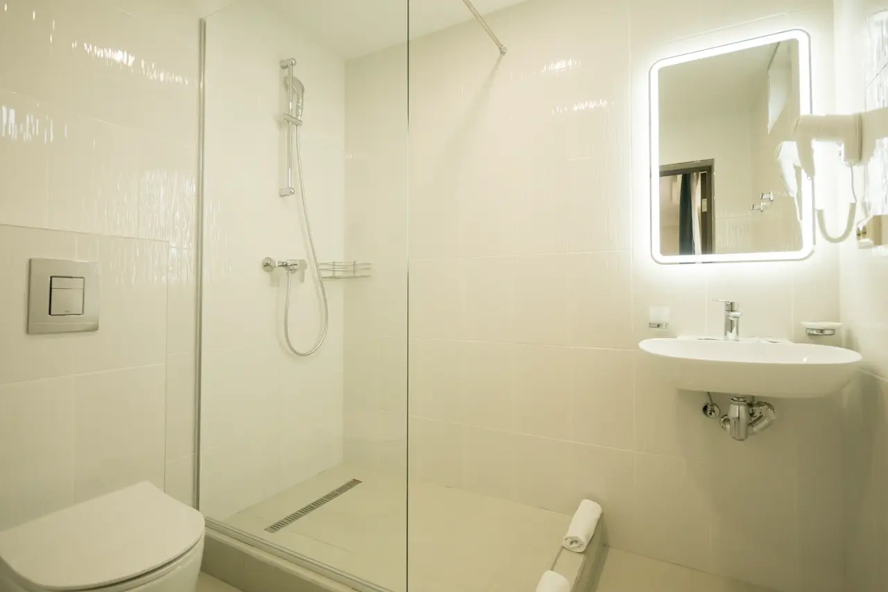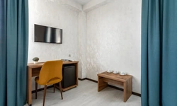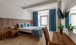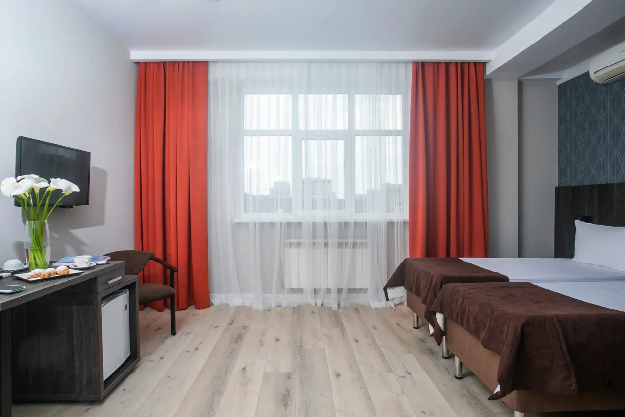 Уютный однокомнатный номер с двуспальной и односпальной кроватями. В номере есть минихолодильник, чайная станция (чай и сахар предоставляются), бутилированная вода, сейф, телевизор. Ванная комната укомплектована косметическими принадлежностями, набором полотенец, халатом и тапочками. Во всех номерах отеля есть балконы. В стоимость включено посещение открытого подогреваемого бассейна, тренажерного зала, сауны и хамам.