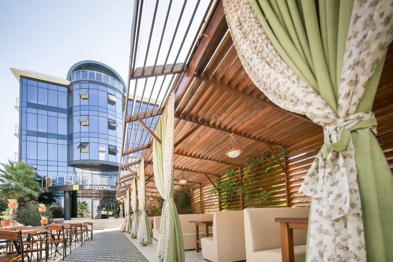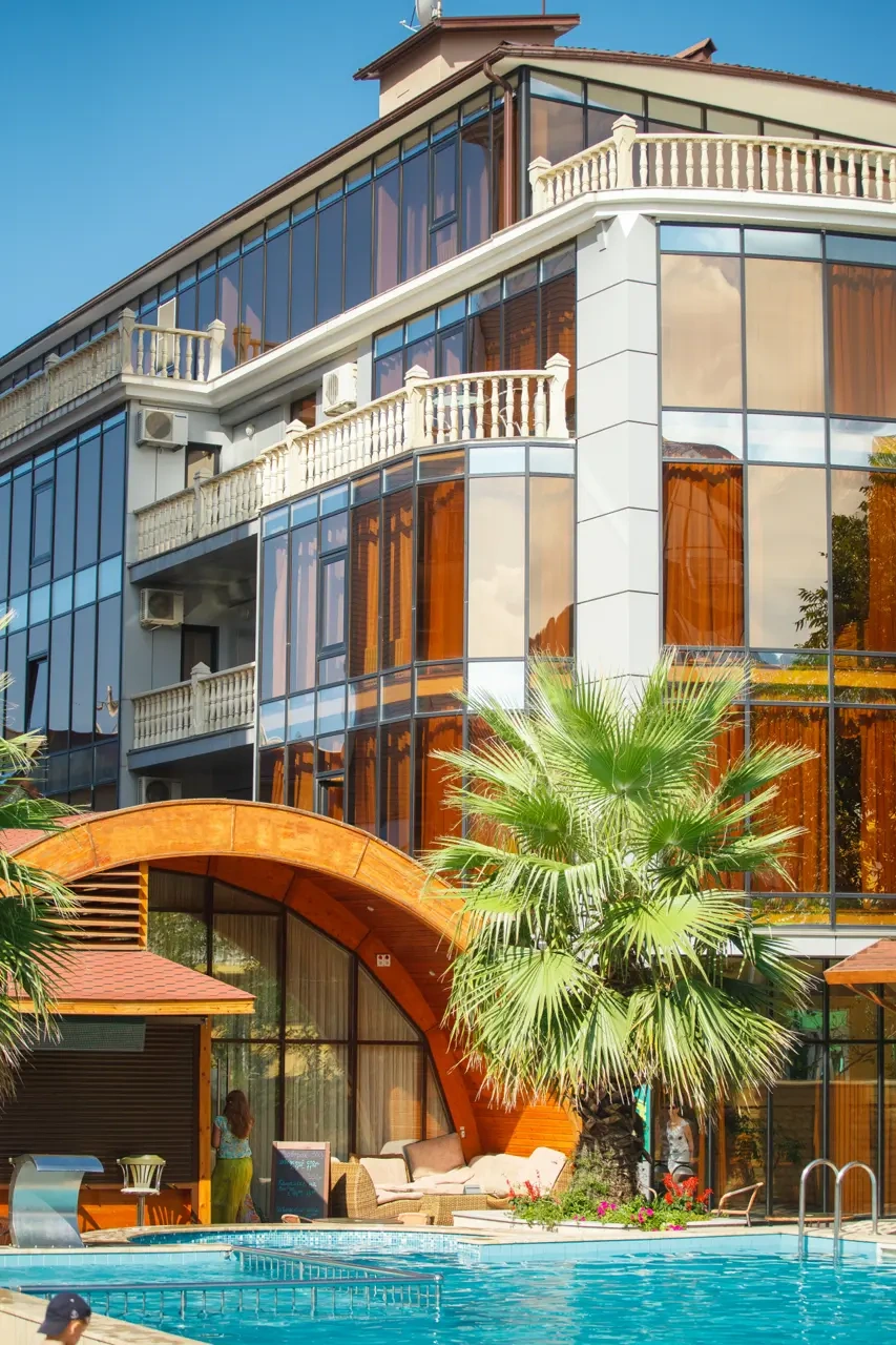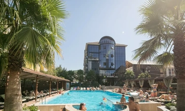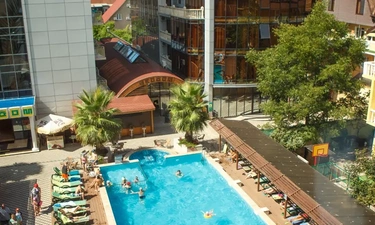 Это самый популярный отель сети, который наилучшим образом подходит для отдыха с детьми. К услугам гостей: ресторан, новая lounge-зона у бассейна, подогреваемый бассейн 15*8 метров с зоной для детского купания, детская площадка и функциональный СПА-комплекс. К услугам гостей: тренажерный зал, сауна и хаммам, кабинеты спа-процедур и косметолога. На территории есть конференц-зал со всем необходимым для проведения деловых мероприятий.