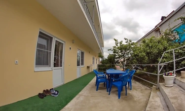 Добрый день, уважаемые гости! Предлагаем посуточно номера в гостевом доме в Адлере. Сами хозяева, не посредники! Все номера с удобствами: душ и туалет, кондиционер, телевизор, холодильник. В нашем гост. доме 2 общие кухни со всем необходимым, большой двор, теннисный стол, качеля, песочница, детский каркасный бассейн, мангальная зона, бесплатная парковка для авто. До моря 15-20 мин ходьбы. Магазины, кафе, столовые, океанариум, дельфинарий, сквер и др. развлечения-все в шаговой доступности. До остановки общественного транспорта 5 мин. неспеша. При бронировании от 5-ти суток встречаем бесплатно (аэропорт Сочи и жд вокзал Адлера). Адрес: Православная 5/1. Будем рады встрече с вами!