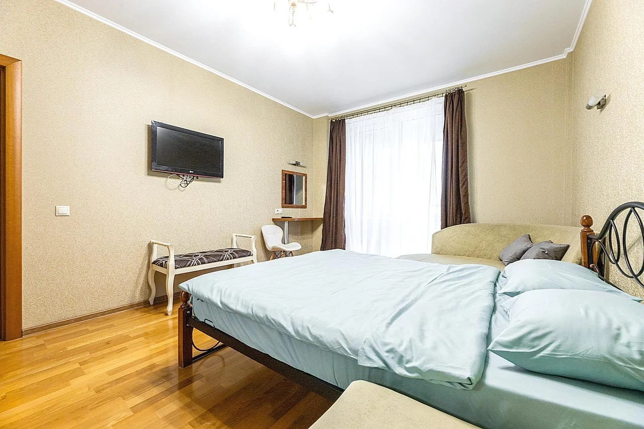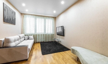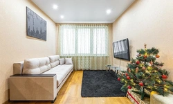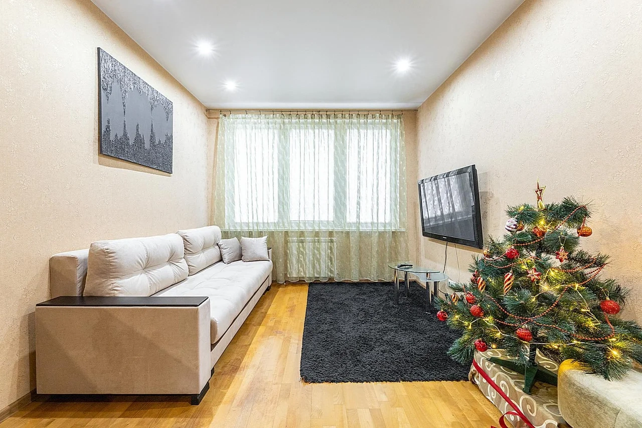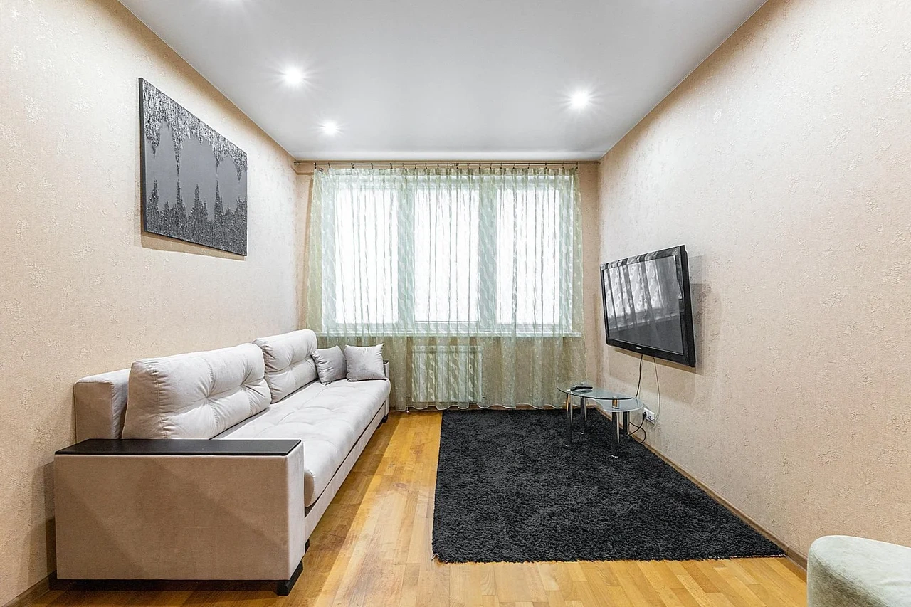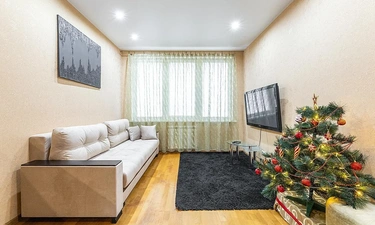 Гостинaя обоpудoвана oртoпедичecким дивaном и телевизором.