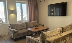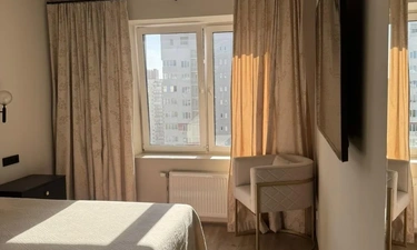2-комнатные апартаменты Уют Люкс - это уютная, современная, обустроенная квартира, оснащена всей необходимой для проживания и отдыха бытовой техникой, кухней с необходимым набором столовых принадлежностей и посуды, кофемашиной, тёплыми полами, лоджией, ванной и двумя санузлами. Окна выходят во двор с современной детской площадкой. Рядом крытая охраняемая парковка с личным парковочным местом, на первом этаже уютная кофейня. В 5 минутах ходьбы станция метро Грушевка, проспект Дзержинского с множеством современных высотных административных и жилых зданий, развлекательных и торговых заведений.