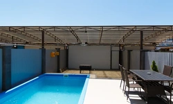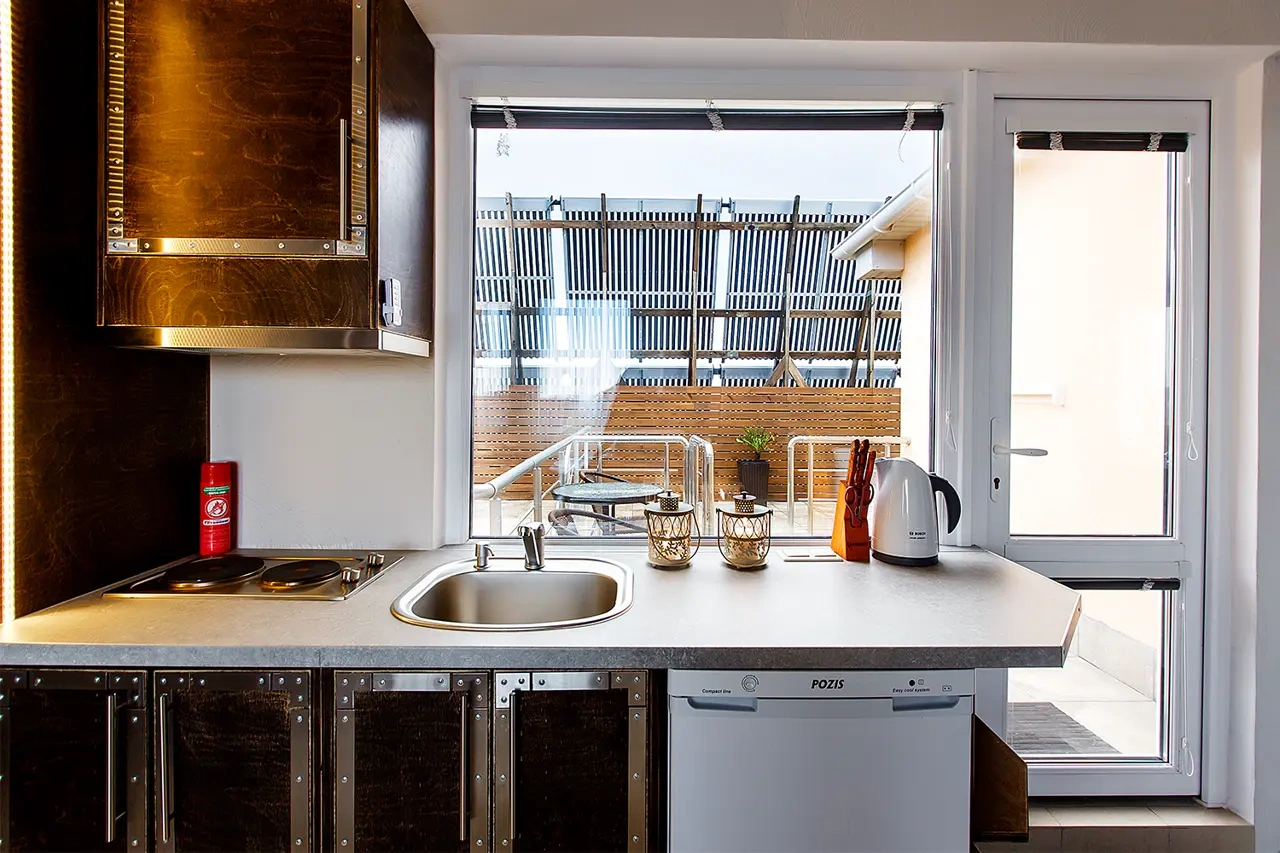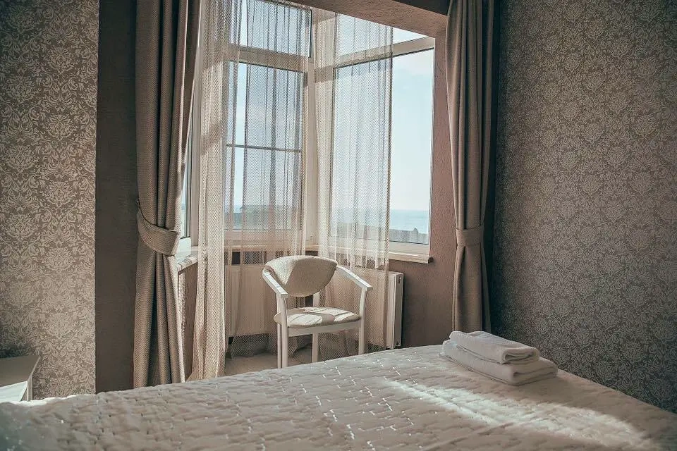 Отель у моря в Севастополе. Наш отель расположен в Севастополе в знаменитой бухте Казачья по соседству с музеем 35-я Батарея. Парк Победы и Бухта Омега 10км. Комплекс расположен на скале с видом на открытое море с террас апартаментов. Каждый апартамент имеет свою террасу на этаже. У Нас вы увидите не стандартное решение пляжного отдыха. На пляж ведут ступеньки прямо в скале, пляж оборудован ровной площадкой для отдыха и Wi Fi. Вас будут окружать только не большое количество наших гостей, море и скалы. В 2-ух км. есть ресторан и галечный пляж "Голубая бухта" с арендой каяков и SUP бордов. Для вас 12 апартаментов с кухней от 2х до 6ти человек, Лофт на крыше у бассейна и отдельный коттедж на 8+ человек. Детская площадка с горкой, качелями и батутом. Лаунж зоны у бассейна 20м. на солнечной и теневой стороне. Большая общая беседка с мангалом на 16 человек и 2 мангала у семейных корпусов. Бассейн на крыше. Аренда зала для конференций и мероприятий с караоке. Русская баня. Парковка и набережная для прогулок с Вашими питомцами.