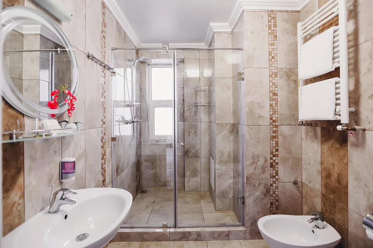 Номер люкс с двумя спальнями с одним кондиционером, приходилось спать с открытыми спальнями. Нет москитных сеток в спальнях на окнах комары съели. Дверь входная еле открывается. В туалете постоянно неприятный запах. В день отъезда отключили воду и в отеле даже нет никаких накопительных емкостей, это огромный минус. Интернет с перебоями конкретными работал.