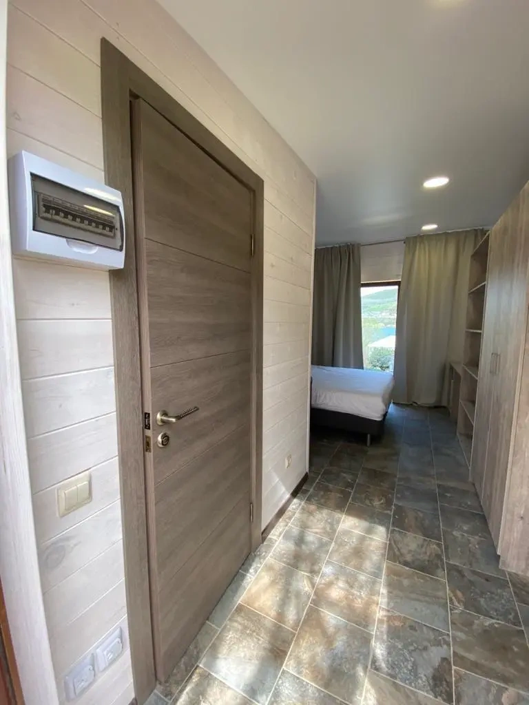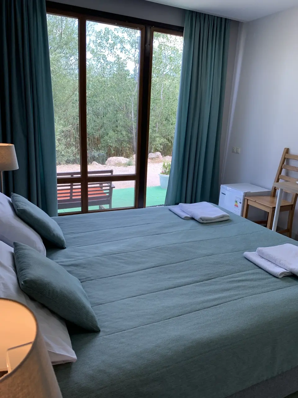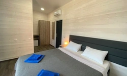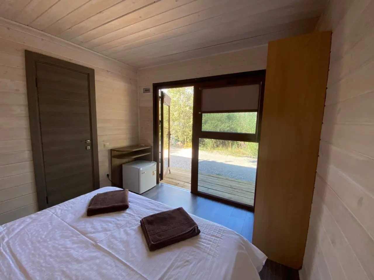 Отдельное бунгало площадью 20 кв м, на 2 или 3 (с доп. местом) человек. В номере есть кондиционер, подогрев полов, туалет, душ, шкаф для вещей, 2-спальная кровать, разделяющаяся на 2 спальных места, холодильник, стол, стулья