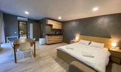 Отдельное бунгало площадью 30 кв м, на 4 человек. В номере есть кондиционер, подогрев полов, туалет, душ, шкаф для вещей, 2-спальная кровать, разделяющаяся на 2 спальных места, 2 раскладывающихся кресла, холодильник, миникухня, стол, 4 стула, кухонные принадлежности, чай, плитка