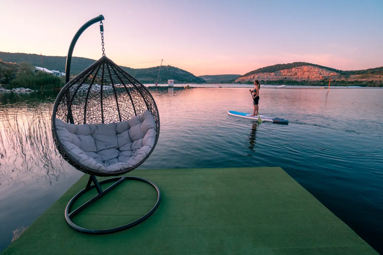 Парк расположен в 10 км от Балаклавы, в непосредственной близости от трассы Севастополь-Ялта, поэтому добраться до нас на составит труда ни на общественном, ни на личном траспорте. Вокруг парка - холмы и виноградники Крыма, и умопомрачительные виды. На территории турбазы находится охраняемая парковка на 100 м/м, сауна с панорамным видом на озеро, открытый бассейн, надувной аквапарк, спортплощадка, детская площадка, кафе, множество зон для отдыха, большой шатер-пергола с открывающейся крышей для мероприятий, прокат катамаранов и беседок с мангальными зонами.
