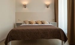 Можно было бы в нашем номере предусмотреть какую-либо лёгкую скользящую перегородку между кроватью для взрослых и остальной зоной - тем более что особенности конфигурации номера и площадь позволяют сделать это :)
