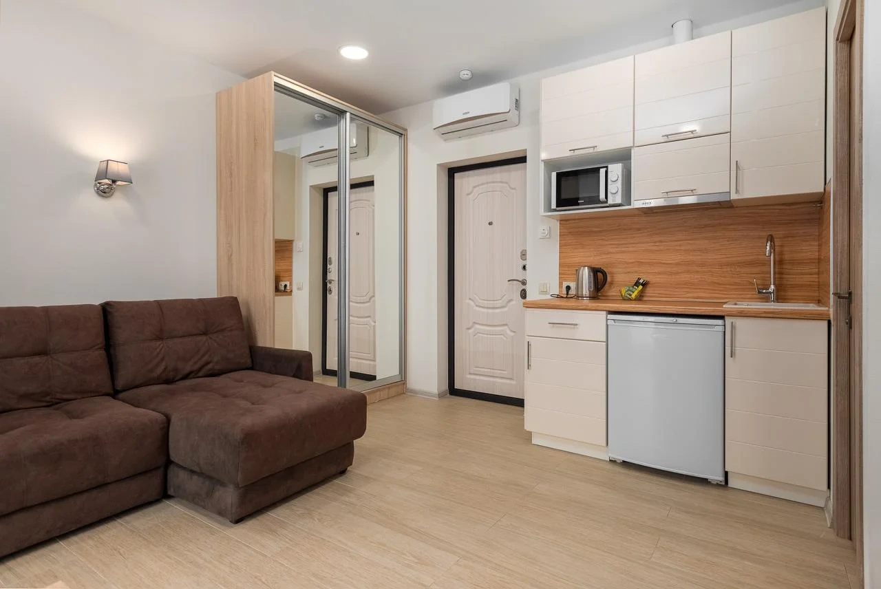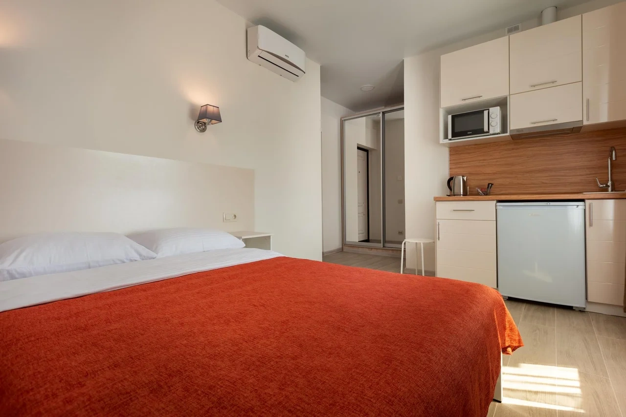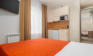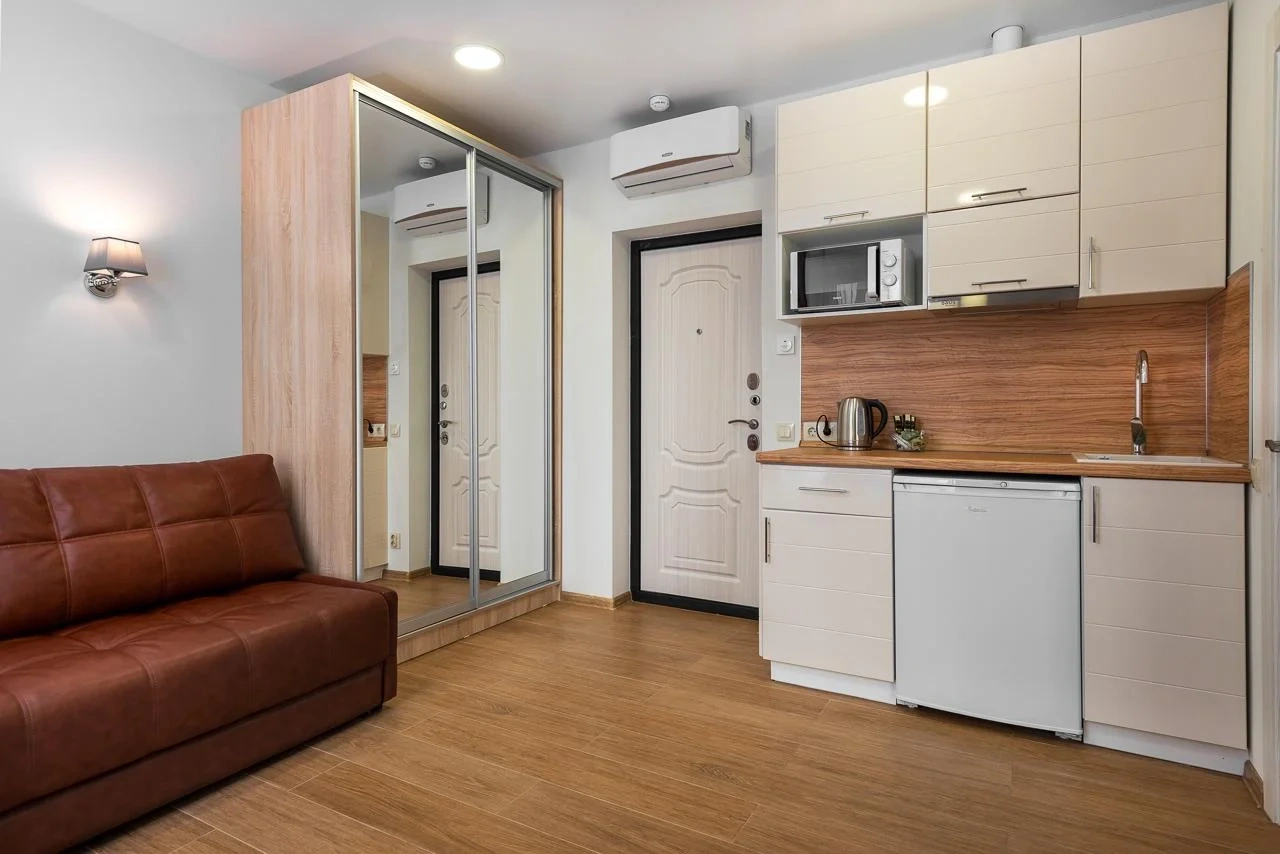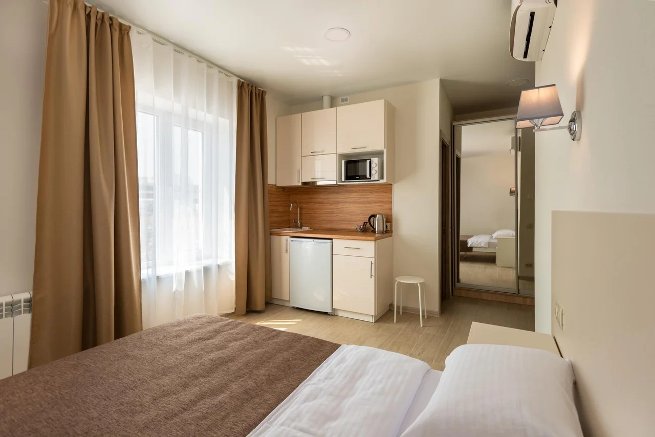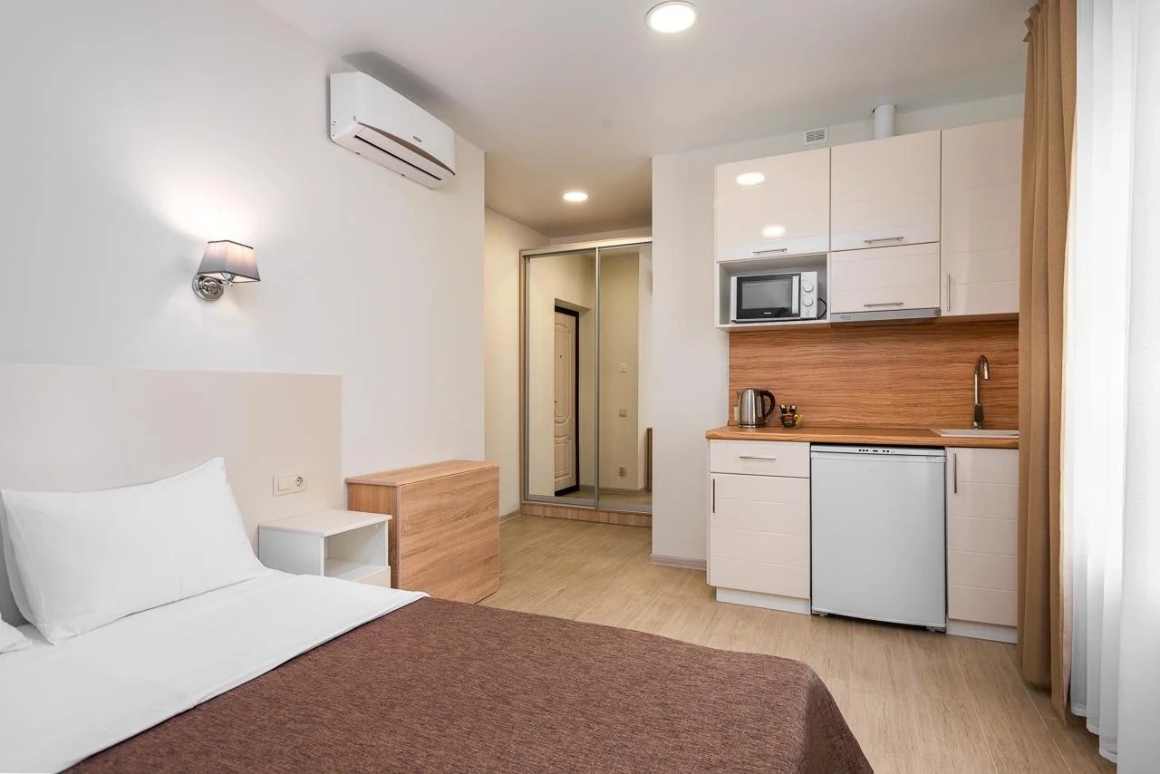 Чисто, уютно, как дома! В номере есть кухня, очень быстрый интернет, современная техника. Хорошая шумоизоляция. Есть парковка во дворе с автоматическими воротами. Владельцы относятся как к своему дому.