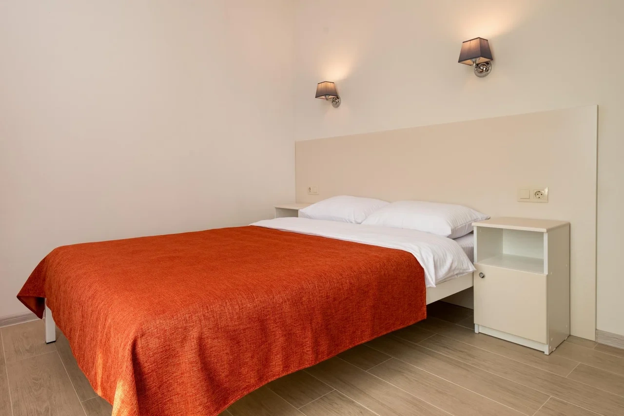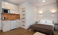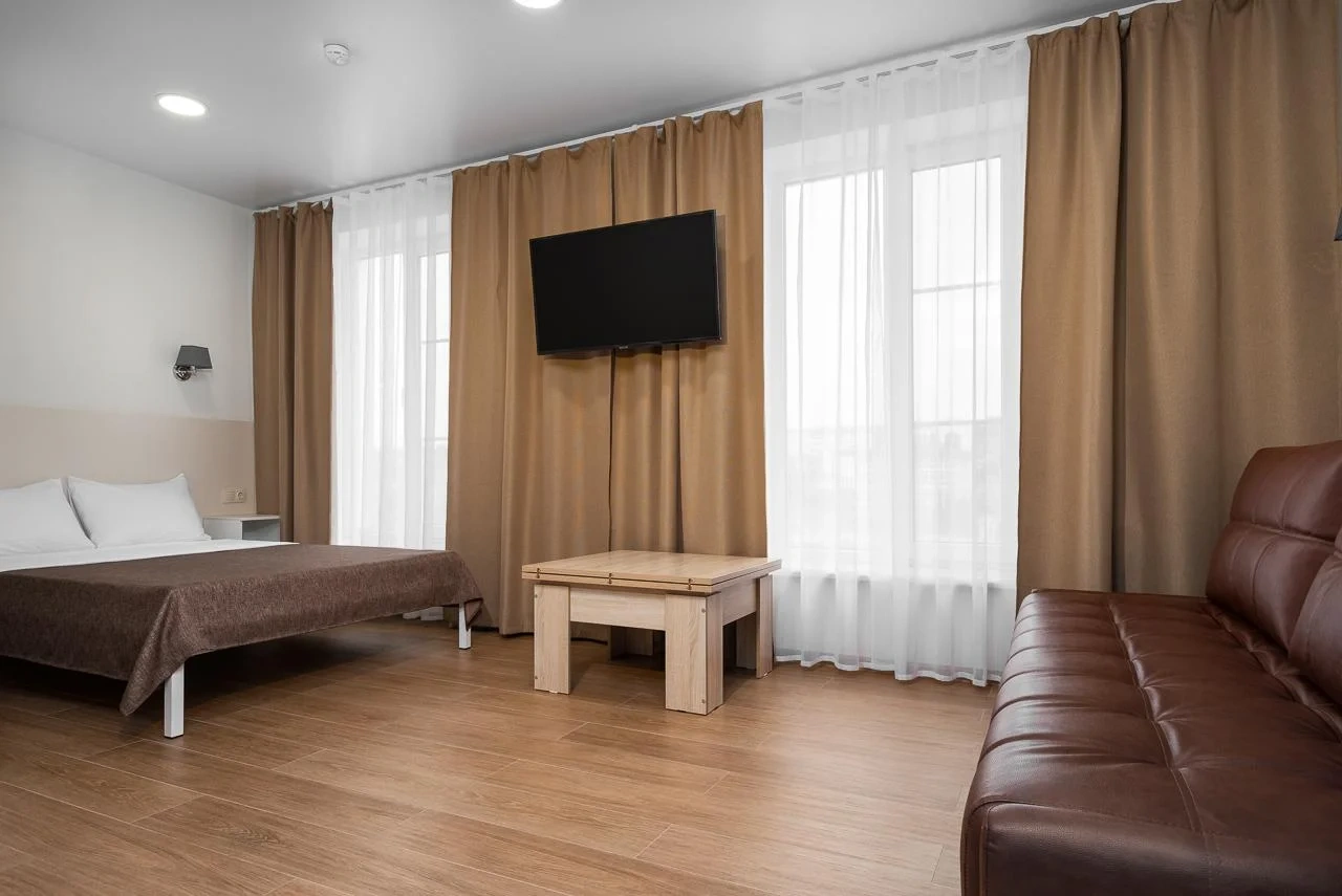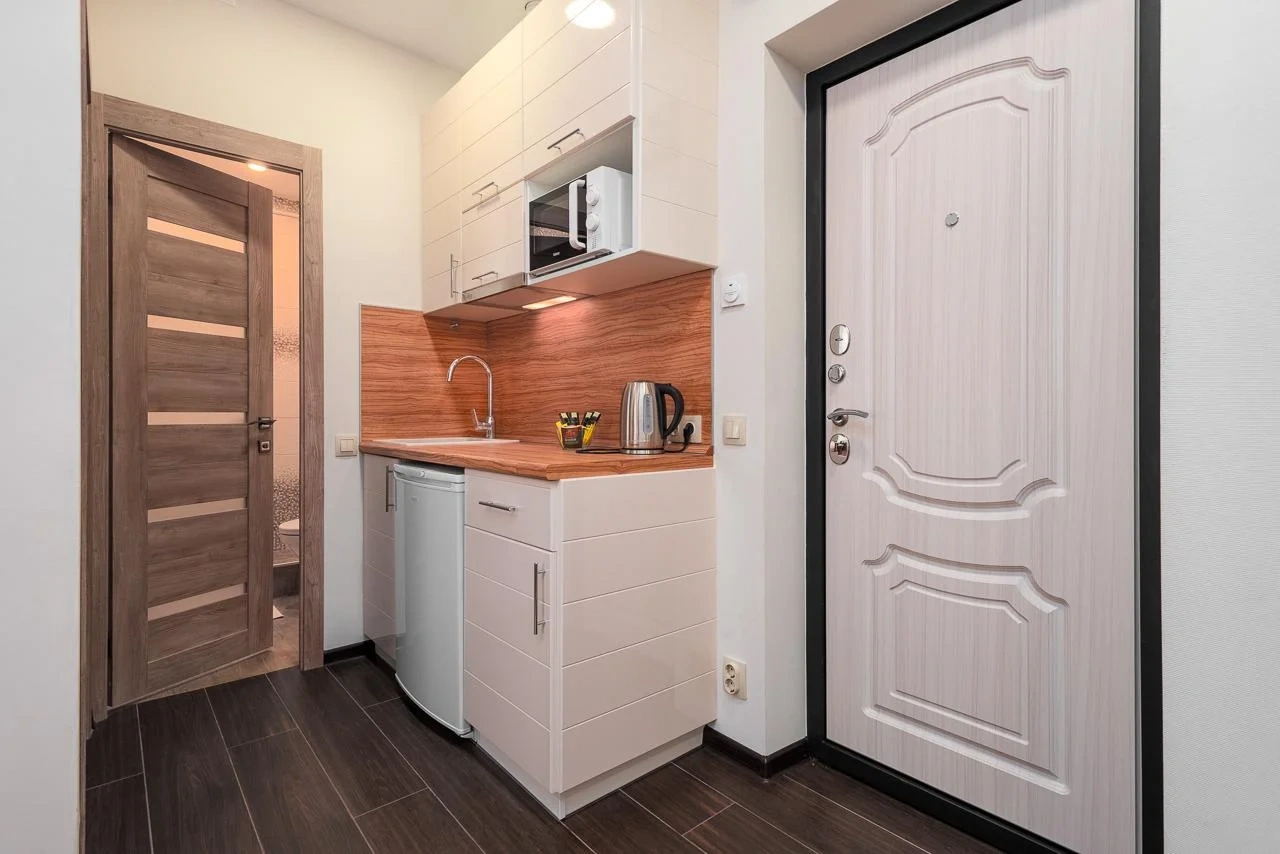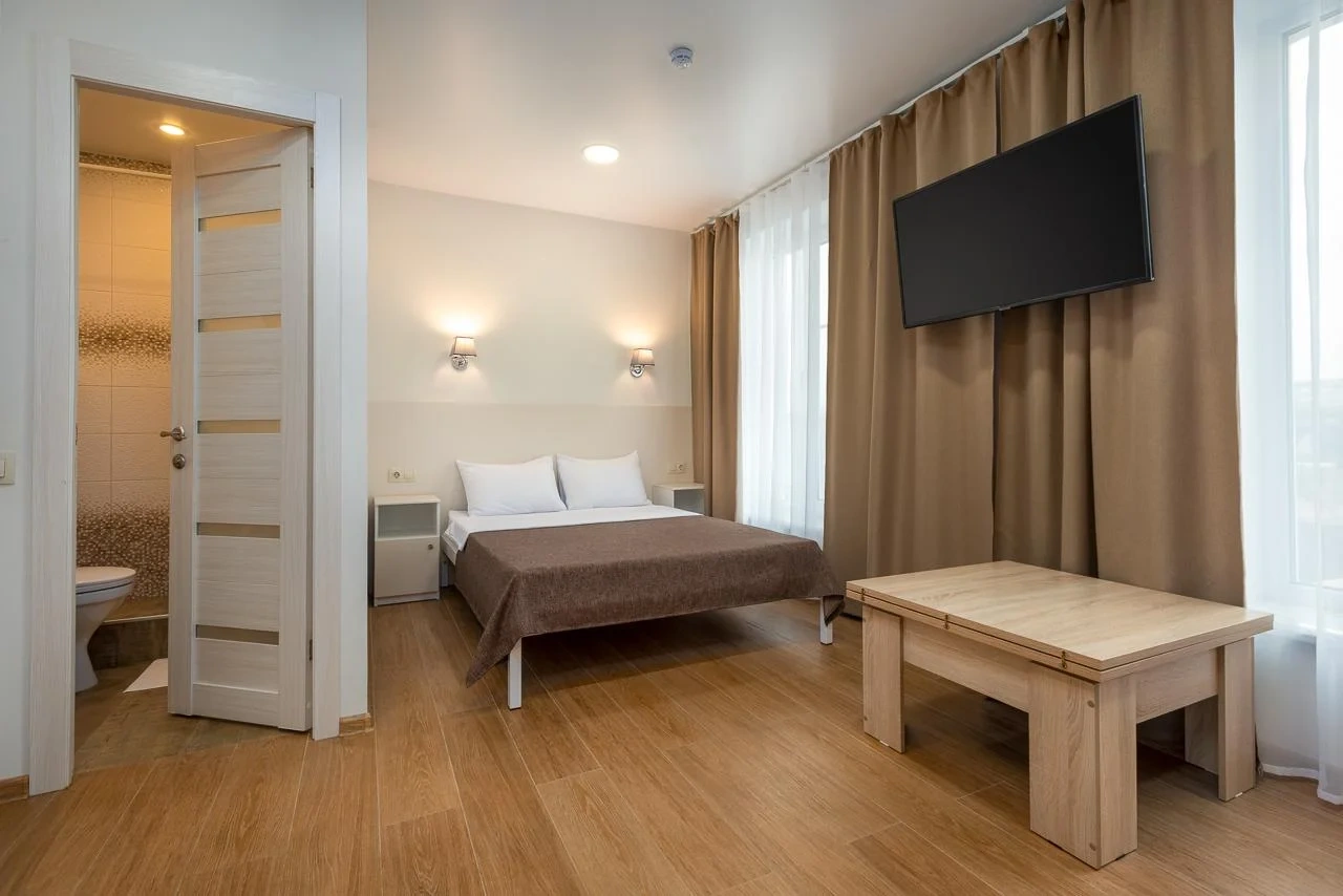 Чисто, уютно, как дома! В номере есть кухня, очень быстрый интернет, современная техника. Хорошая шумоизоляция. Есть парковка во дворе с автоматическими воротами. Владельцы относятся как к своему дому.