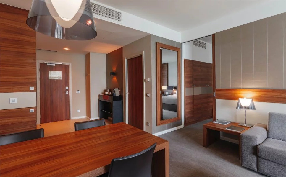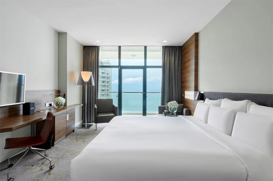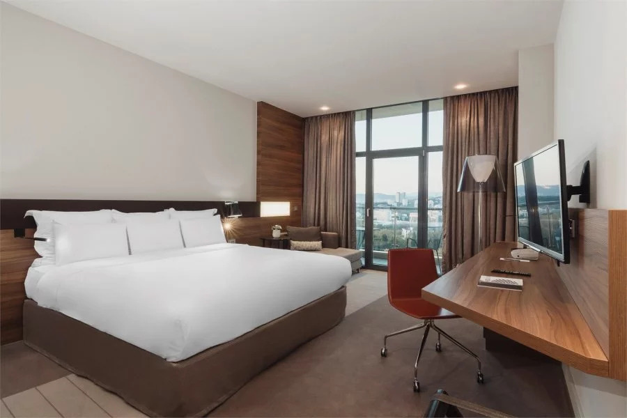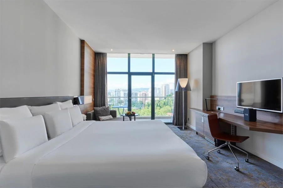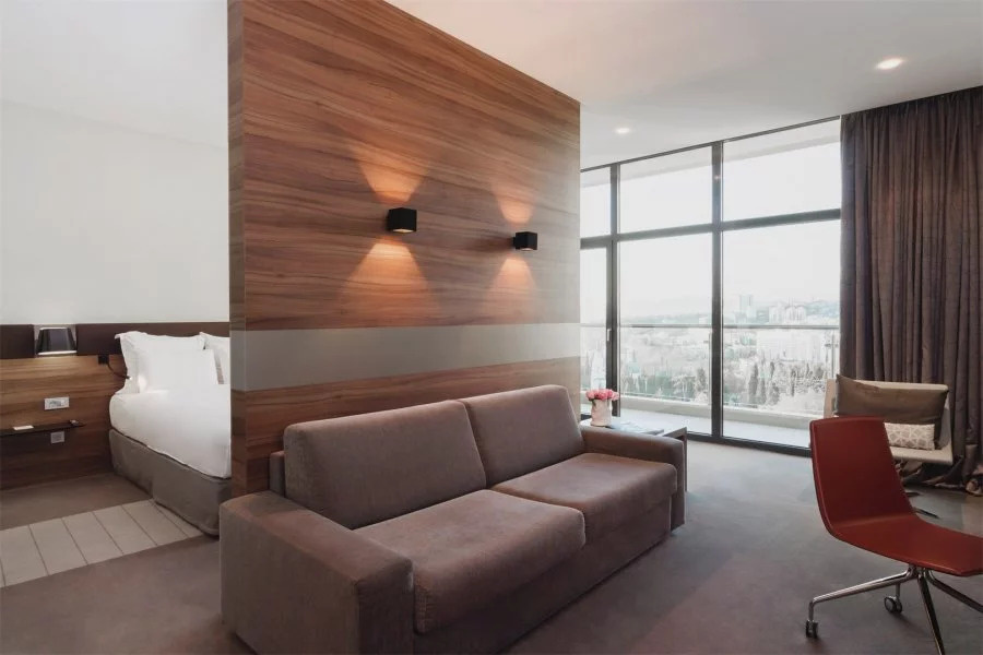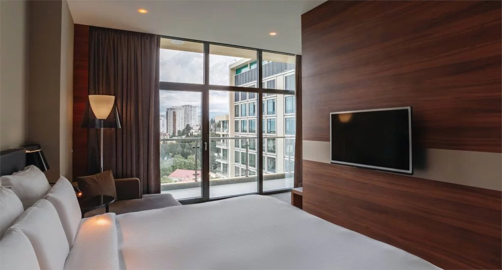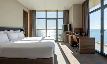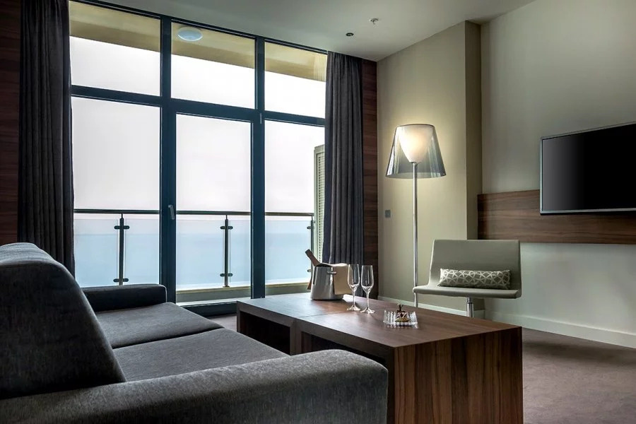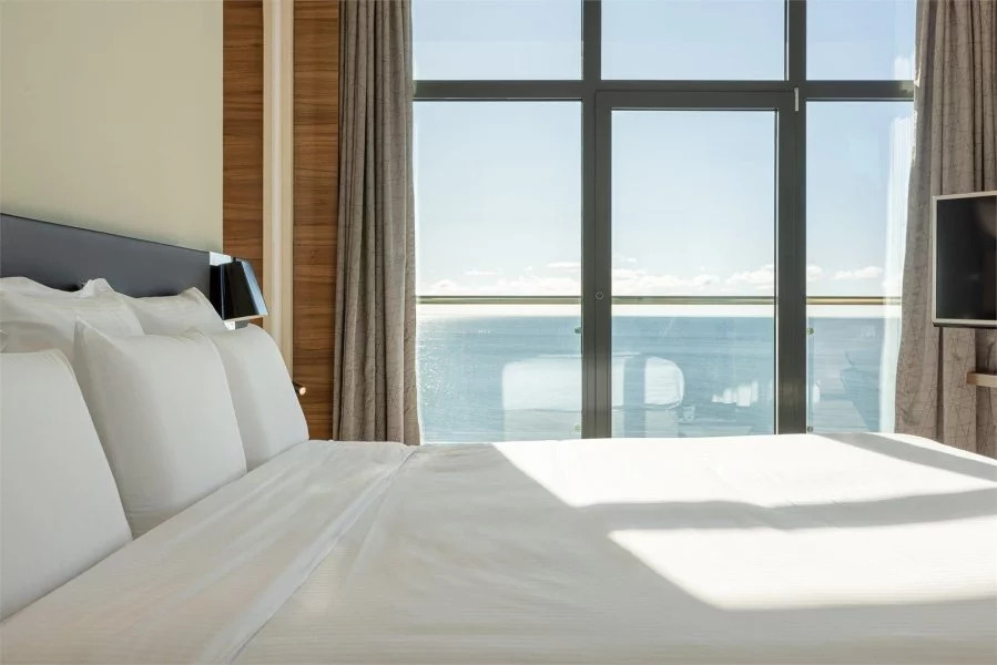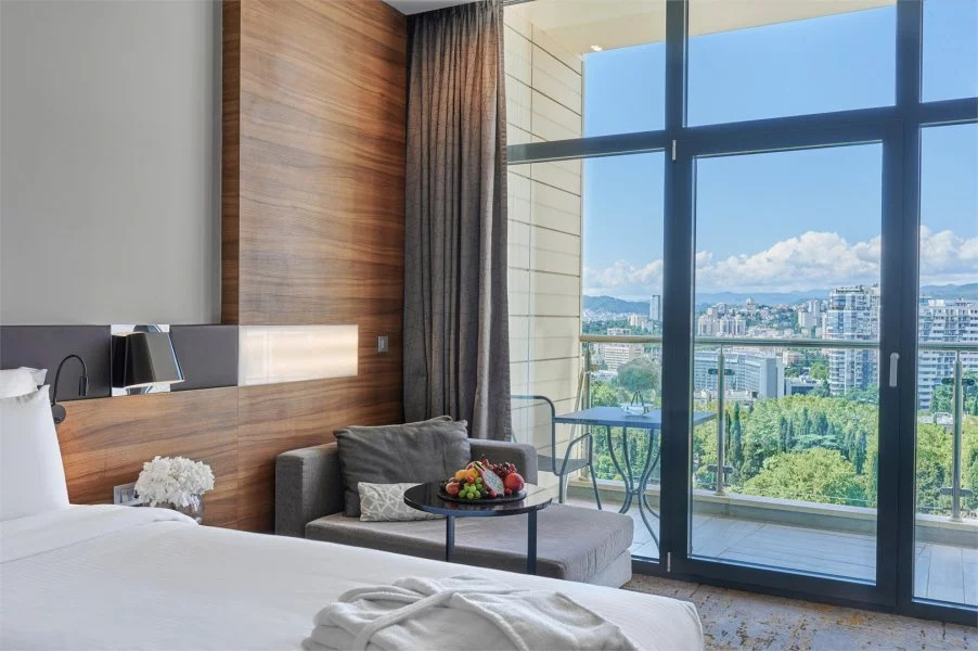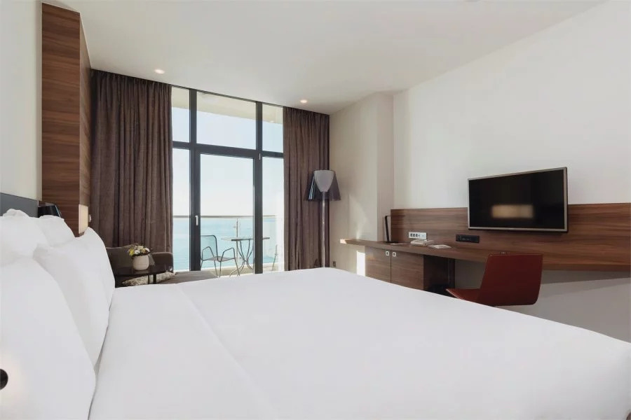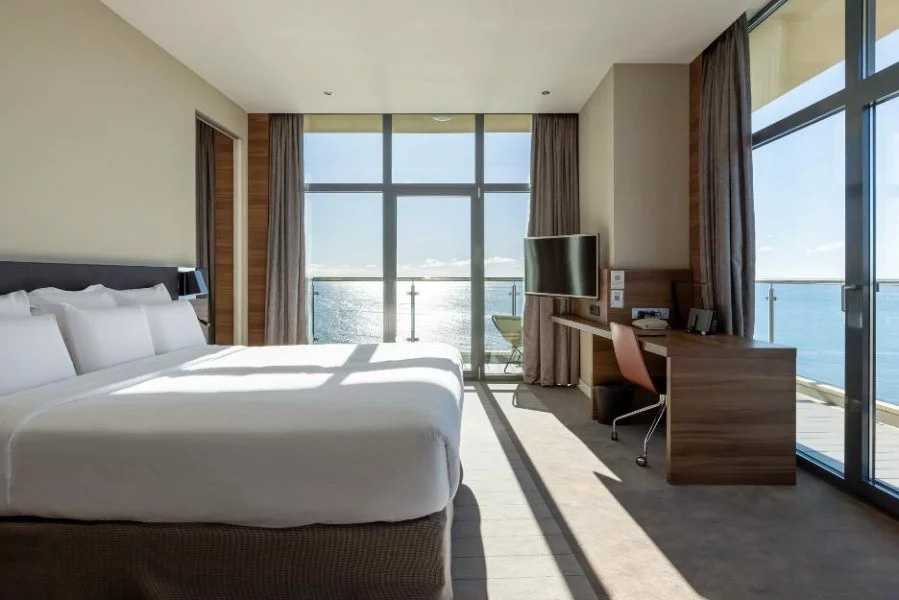Каждый номер в отеле Пульман Сочи Центр имеет балкон с красивым видом на Сочи. У отеля есть собственный пляж и открытый бассейн, который можно посещать в период сезона. Каждый путешественник оценит роскошный вид на море, круглосуточный бар и ресторан средиземноморской кухни, а также спа-центр с бассейном под крышей, на 16 этаже гостиницы. Дополнительное удобство для деловых и семейных гостей – бизнес-центр и бесплатная подземная парковка.