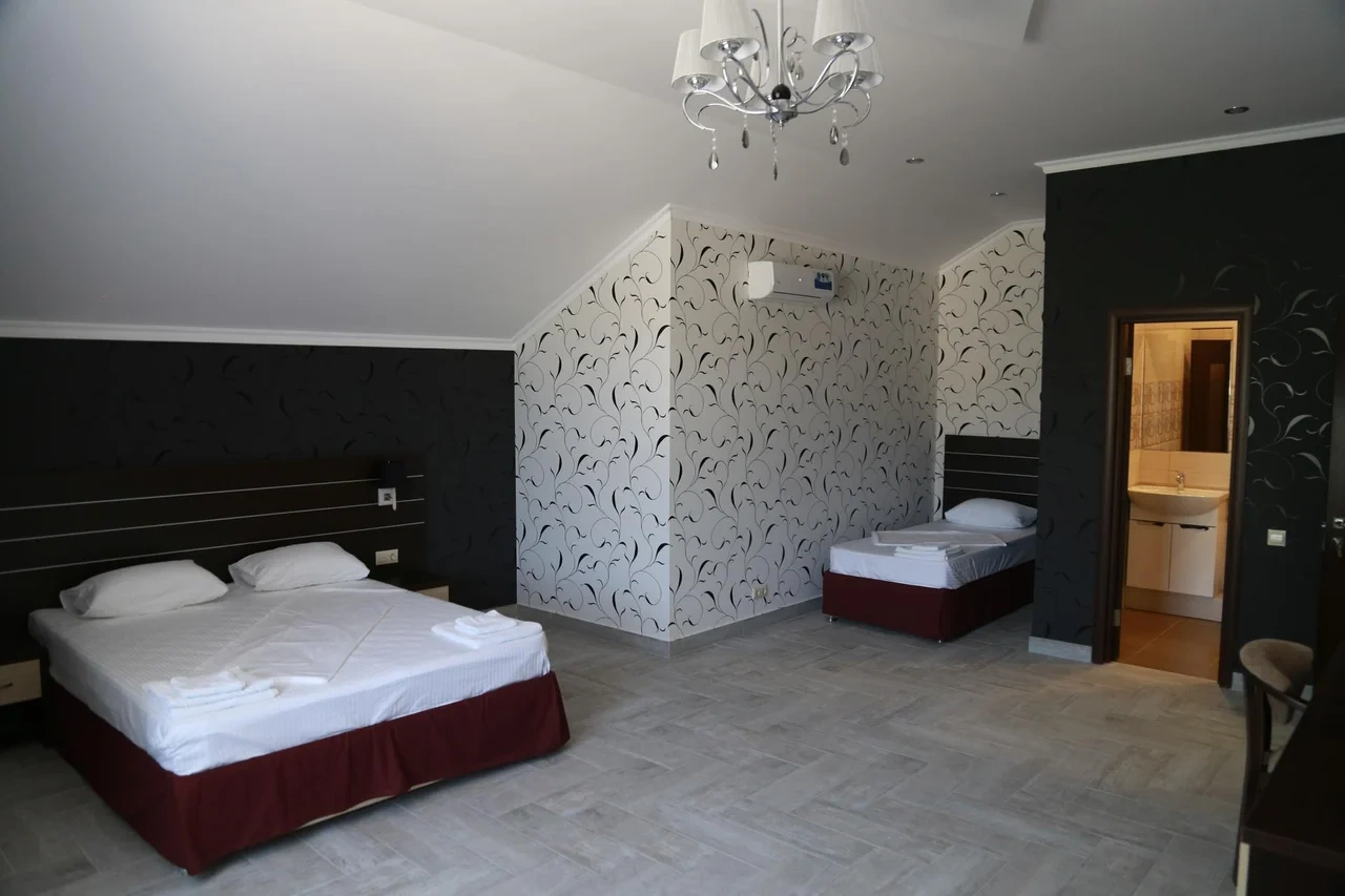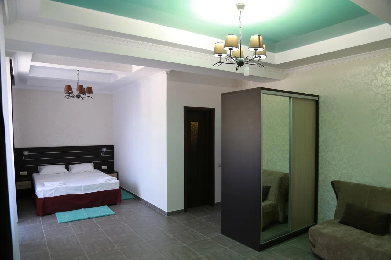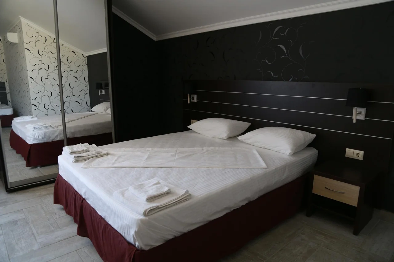 Каждый номер оснащён кондиционером, холодильником, тонким телевизором качество FullHD и конечно кабельным TV, собственной просторной ванной комнатой с санузлом, большой кроватью с ортопедическим матрасом. В зимний период в номерах стоят чайнички с замечательным чаем и кофе - бесплатно. Летом конечно же прохладная водичка. На территории гостевого дома PARADIS есть места для парковки, зона отдыха с уютной беседкой, высокоскоростной интернет с бесплатным доступом к WI-FI, по всей территории гостевого дома PARADIS.