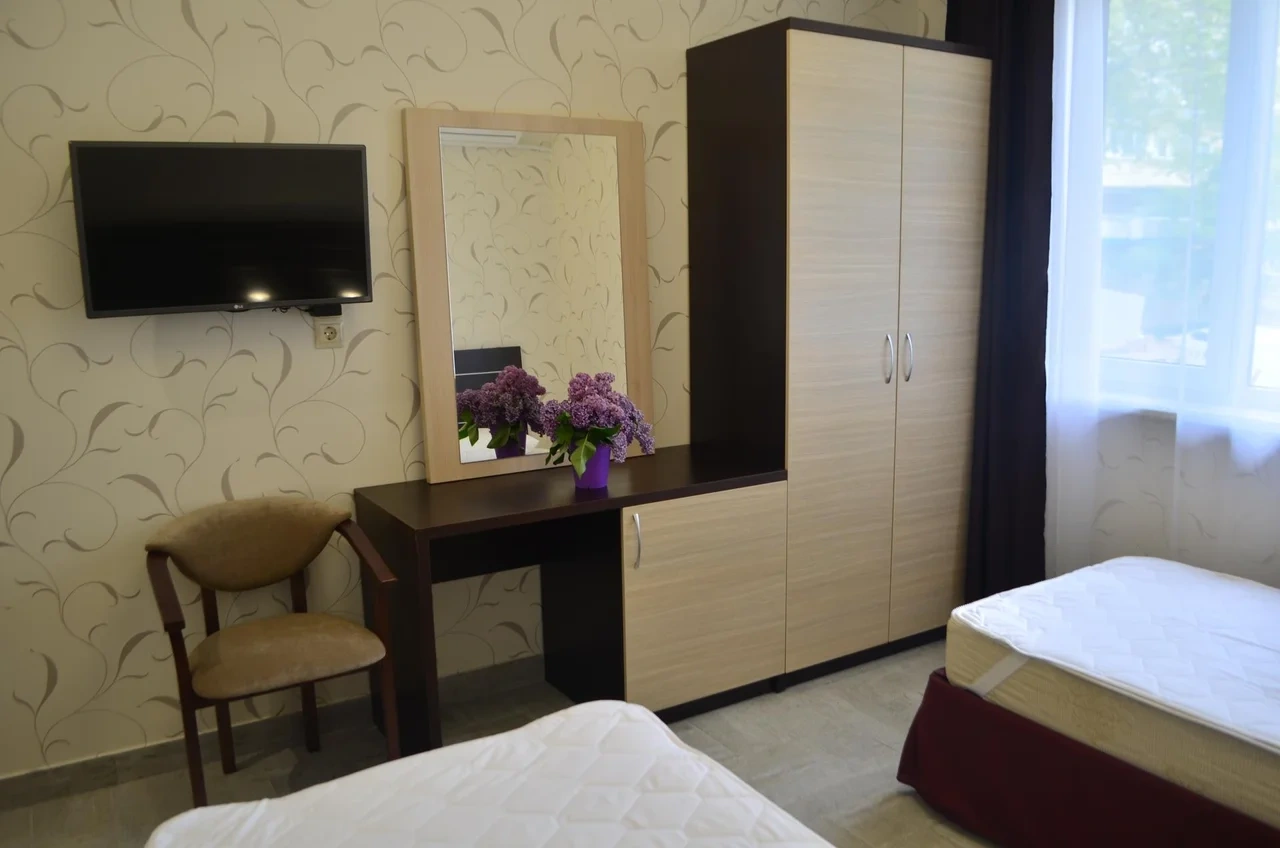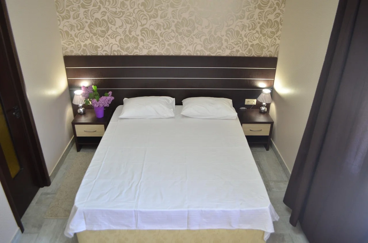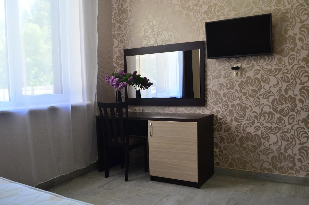 Каждый номер оснащён кондиционером, холодильником, тонким телевизором качество FullHD и конечно кабельным TV, собственной просторной ванной комнатой с санузлом, большой кроватью с ортопедическим матрасом. В зимний период в номерах стоят чайнички с замечательным чаем и кофе - бесплатно. Летом конечно же прохладная водичка. На территории гостевого дома PARADIS есть места для парковки, зона отдыха с уютной беседкой, высокоскоростной интернет с бесплатным доступом к WI-FI, по всей территории гостевого дома PARADIS.