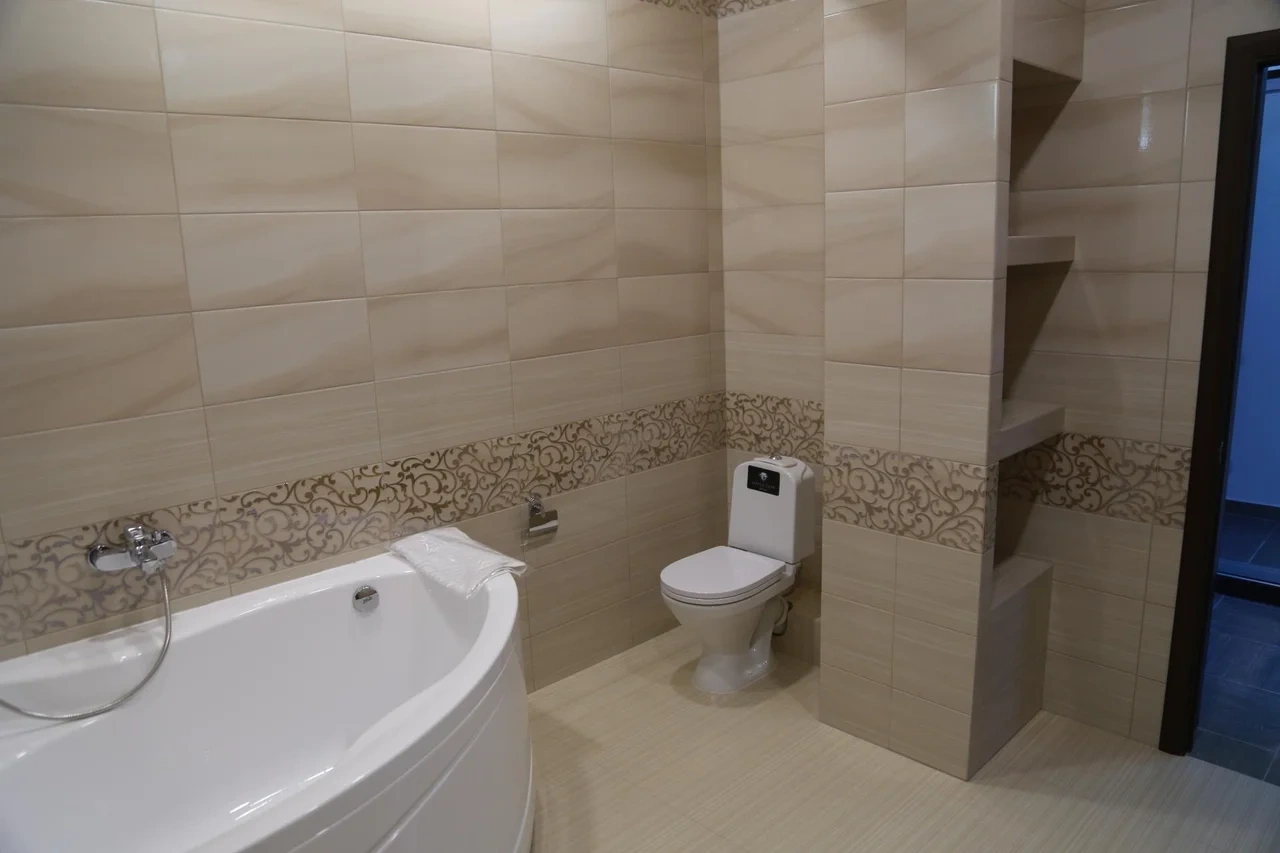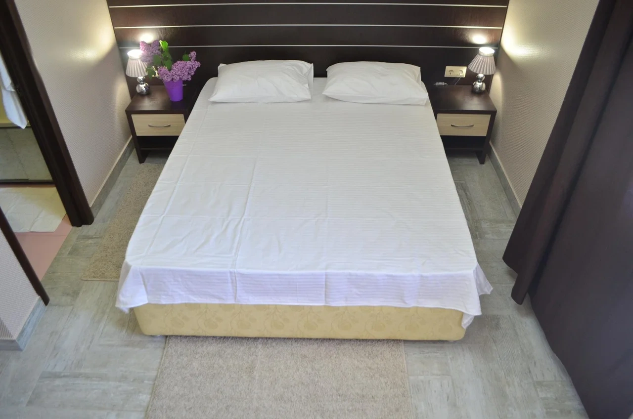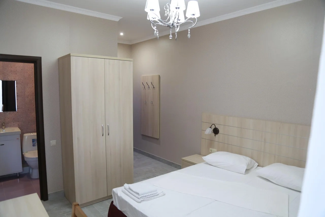 Каждая комната оснащён кондиционером, холодильником, тонким телевизором качество FullHD и конечно кабельным TV, собственной просторной ванной комнатой с санузлом, большой кроватью с ортопедическим матрасом.