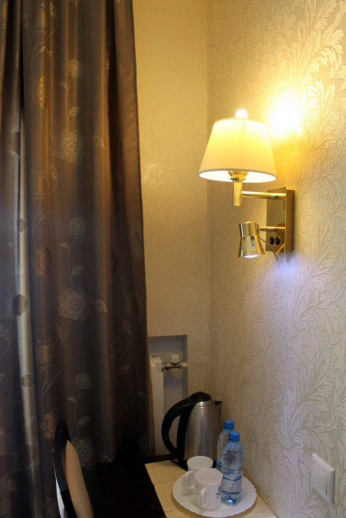 Супер месторасположение, вход с Камергерского переулка, самый центр, в номере есть тапочки, халат, чайник, вода, можно оставить вещи, завтрак рядом -в кафетерии «Хлеб насущный», несколько вариантов на выбор.