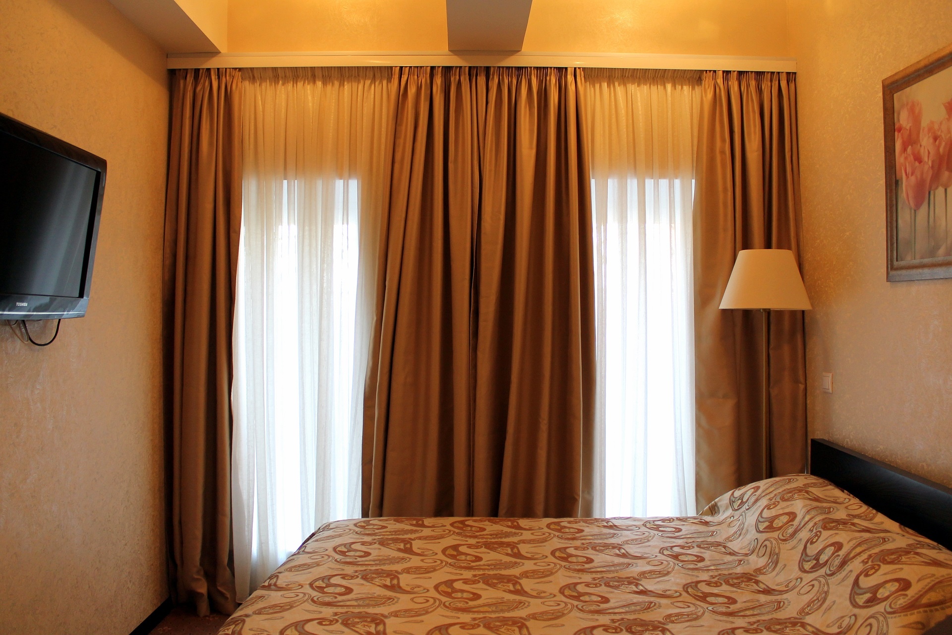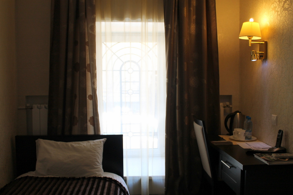 Окна номера выходили во двор, место разгрузки расположенных на первом этаже кафе, по этому ночью мешали звуки разгрузки и голоса.