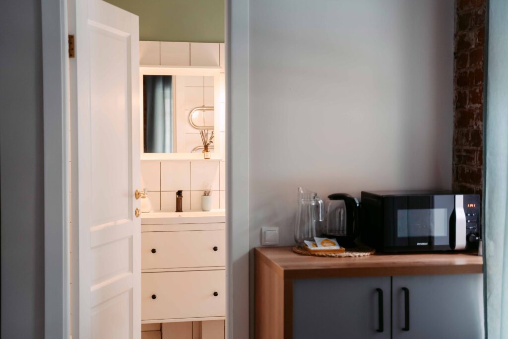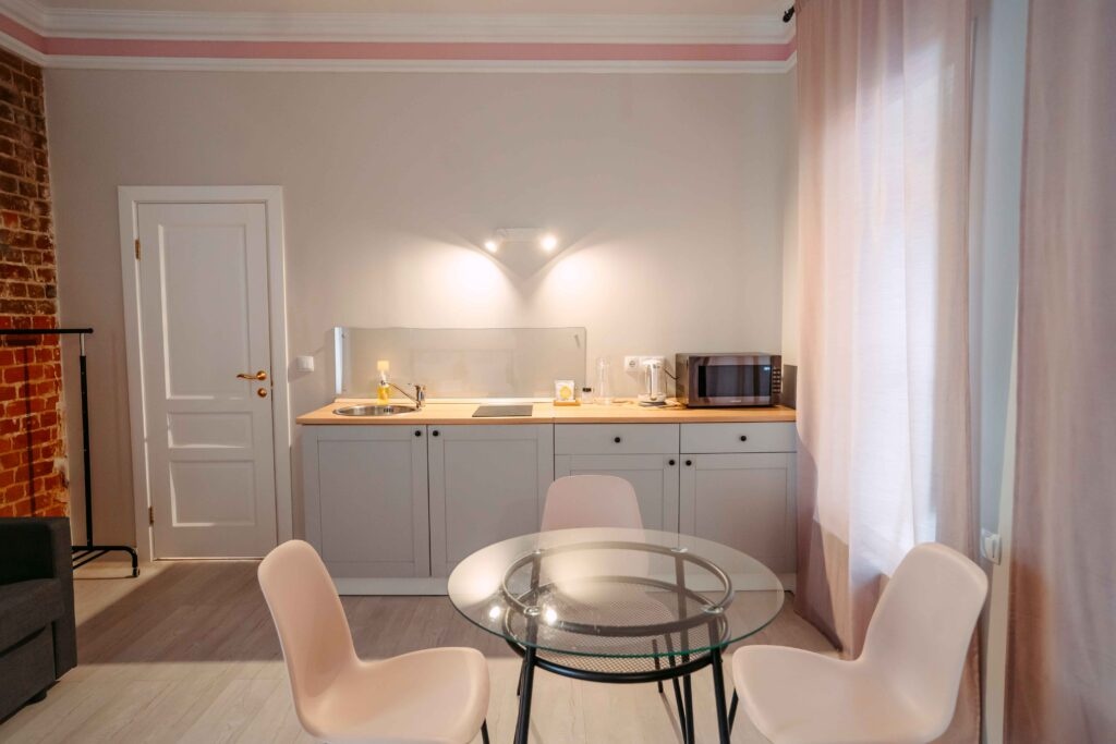 Уютные номера с собственной мини-кухней и ванной комнатой.
