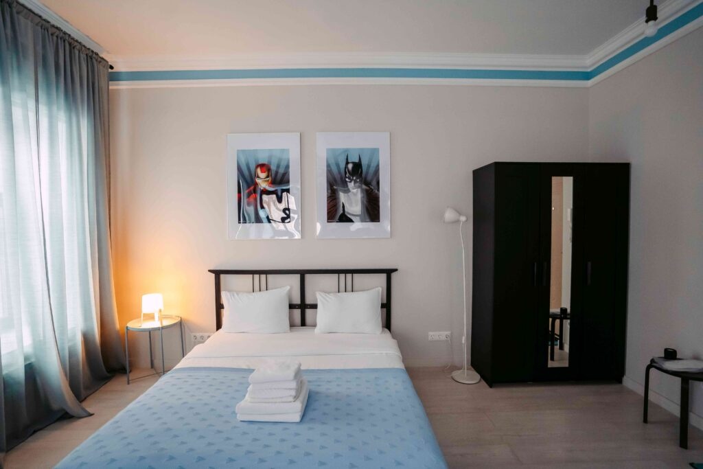 Правила проживания Если Вы хотите заехать раньше 15:00 или выехать позже 12:00, сообщите нам. Такая услуга стоит 100% от суточной стоимости номера. Пожалуйста, соблюдайте правила, чтобы ваше пребывание в отеле было максимально комфортным: Выключайте свет и электроприборы перед уходом. Соблюдайте тишину с 22:00 до 8:00 Не курите в номере и здании отеля – за это предусмотрен штраф 2 000 ₽ Правила выезда Оставьте ключи от номера в мини-сейфе рядом с дверью. При потере ключей, оплачивается или удерживается залог 1 000 ₽ Материальный ущерб от порчи или потери имущества гостиницы возмещается в полном объеме. Комфорт Во всех наших номерах есть кондиционер, фен, утюг. Для каждого гостя в апартаментах подготовлены комплекты с постельным бельем, банными полотенцами, одноразовые тапочки, зубные наборы, жидкое мылом и шампунь. Если вам необходимы дополнительные полотенца или гигиенические принадлежности, а также дополнительное постельное белье, сообщите об этом администратору. Кулер с бесплатной питьевой водой находится на третьем этаже нашего отеля. На первом этаже отеля есть камеры хранения, которыми можно самостоятельно воспользоваться в любое время. Если Вы нашли неисправности или поломки, свяжитесь с нами. Уборка номера Дополнительная уборка проводится по запросу с 12:00 до 15:00 – для этого повесьте табличку об уборке на ручку двери снаружи. Еда Во всех номерах есть мини-кухни с холодильником, плитой и посудой для приготовления и сервировки еды. Если Вы не хотите готовить, то предлагаем вам несколько мест, которые находятся недалеко от отеля